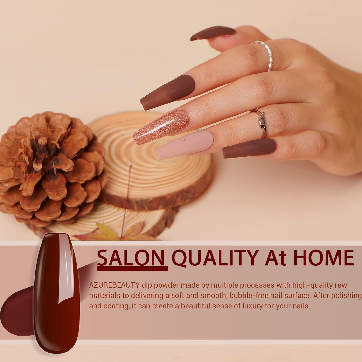 - ⏱【Long Lasting Bright Color】This shatter-resistant, crack-resistant dip powder spreads easily and lasts over 21+ days with daily use! Unparalleled gloss and vividness, no yellowing, and superb adhesion. 32 most fashionable style colors, full but natural, light, breathable, waterproof, and more than 25,000+ shade combinations can be designed. With premium dip powder from AZUREBEAUTY, your nail would look brilliant shine finish