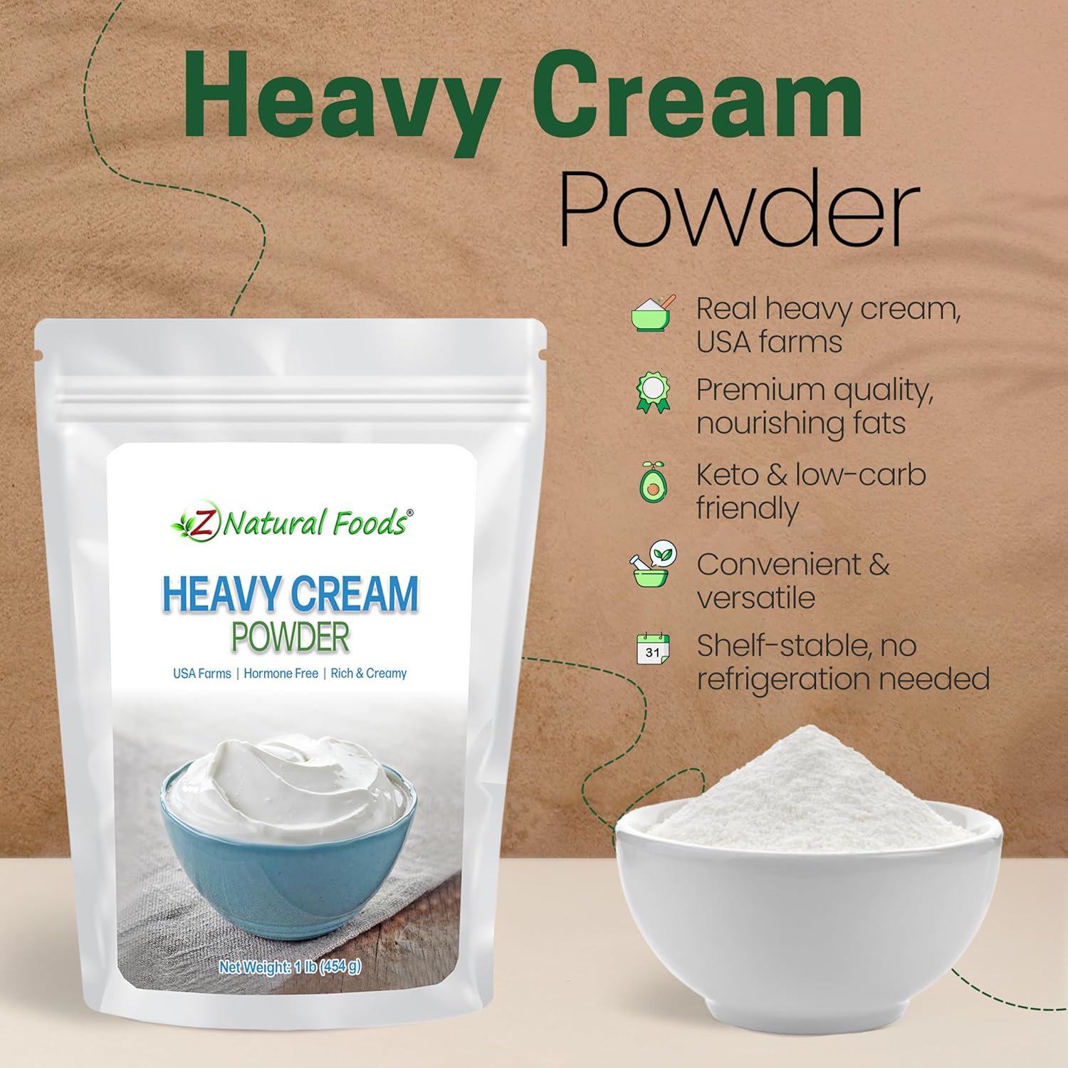 Z Natural Foods Heavy Cream Powder - Nutrient-Dense, Delicious Powdered Cream with 1-Year Shelf Life - Easy to Use & Perfect for Coffee, Baking & Recipes, Keto-Friendly, Gluten-Free, 1 lb
