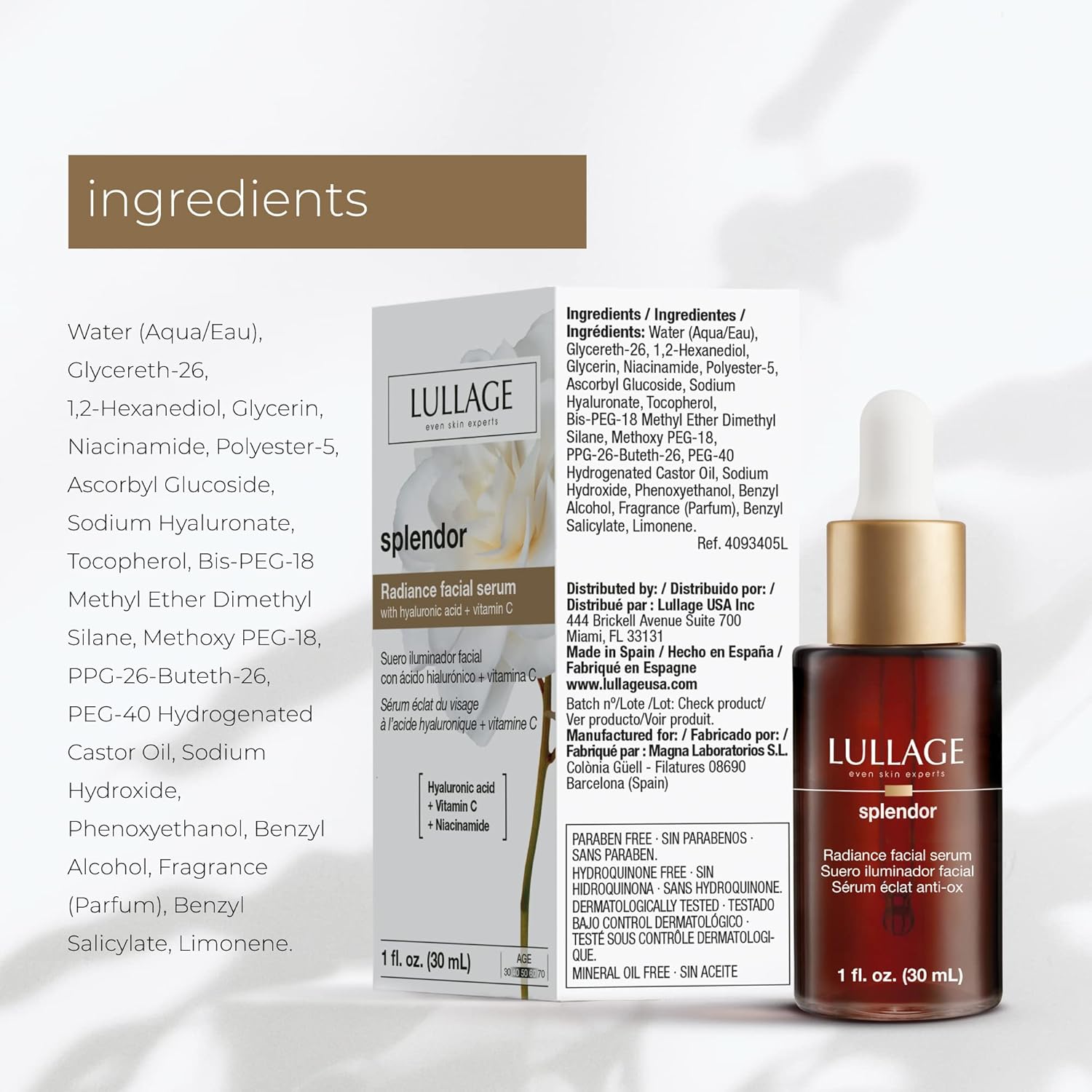 LULLAGE Splendor Radiance Hyaluronic Acid & Vitamin C Serum for Face, Revitalizing Vitamin C Face Serum with Niacinamide to Replenish & Firm the Skin, 1 Fl Oz Dropper Bottle