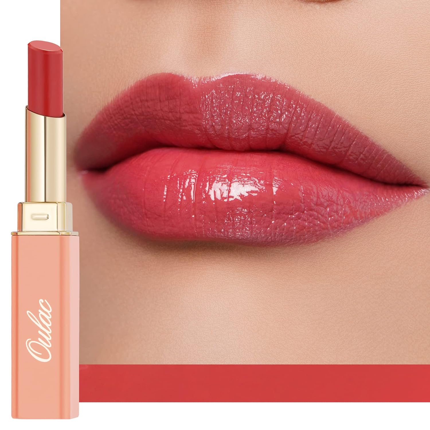 Oulac Apple Red Lipstick - Moisturizing Lip Stick Glossy Solid Shine Lip Gloss, Sheer Shine Juicy Finish, Lightweight and Hydrating Formula for Dry Lip Care, Vegan 2.2g/0.07oz (01)