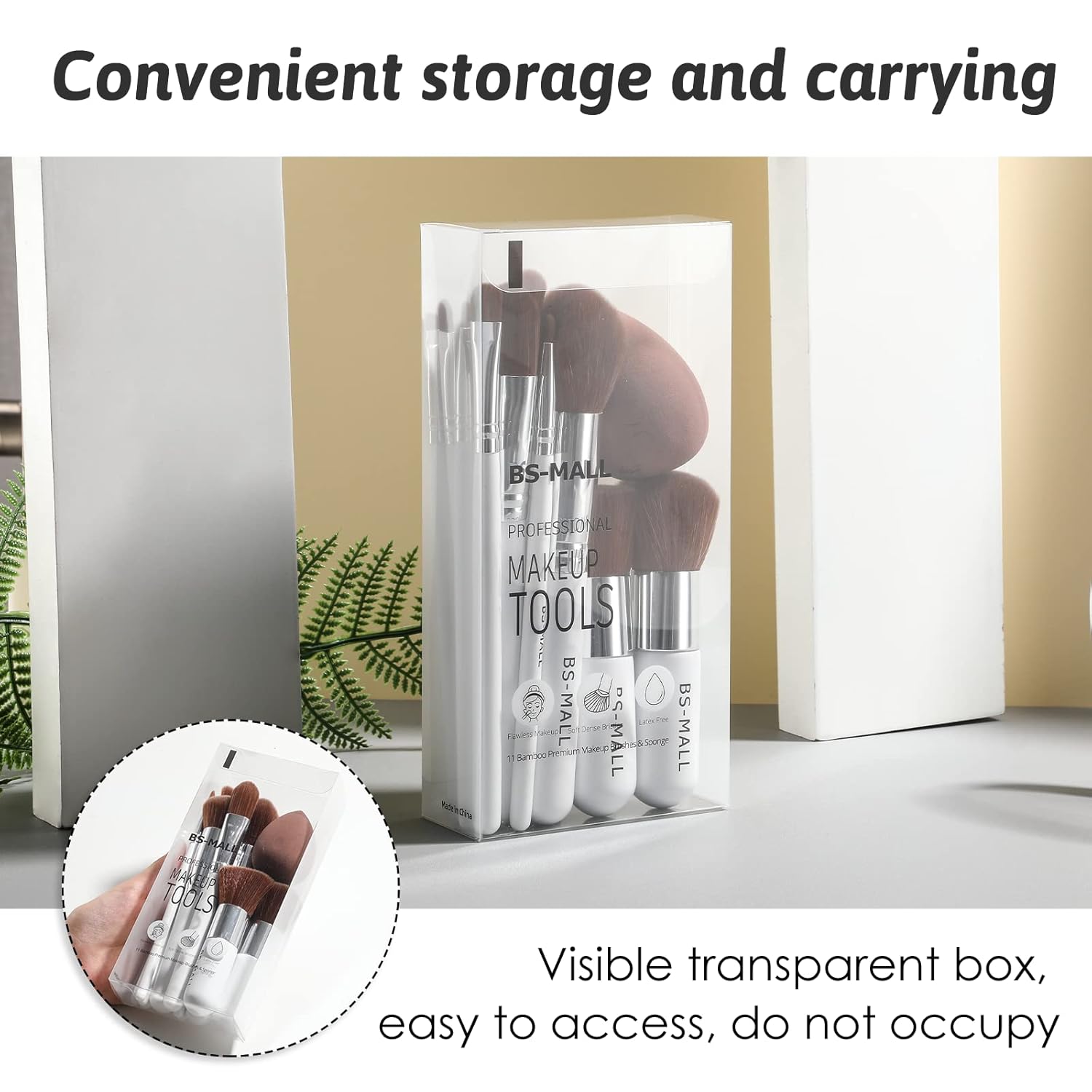 BS-MALL Makeup Brush Set 11Pcs Bamboo Synthetic Kabuki Brush Set Foundation Powder Blending Concealer Eye shadows Blush Cosmetics Brushes with Organizer Bag & Makeup Sponge (White)