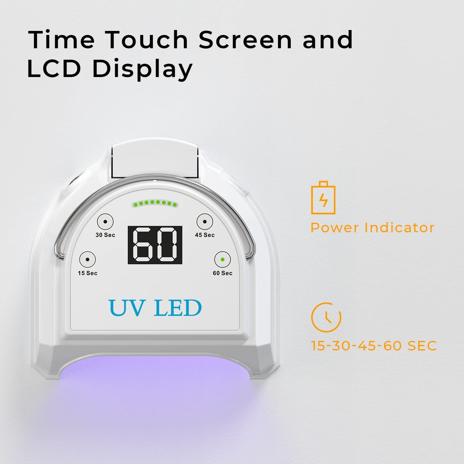 - CURE ALL KINDS OF GEL NAIL POLISHES: This professional nail dryer with 45pcs powerful UV LED light beads adopts advanced technology, dual optical wavelength (365nm+405nm), ideal for all kinds of UV and LED gel nail polish, e.g., base coat, top coat, any brand color gel, hard gels, builder, acrylic, sculpture gel, UV shellac, etc.