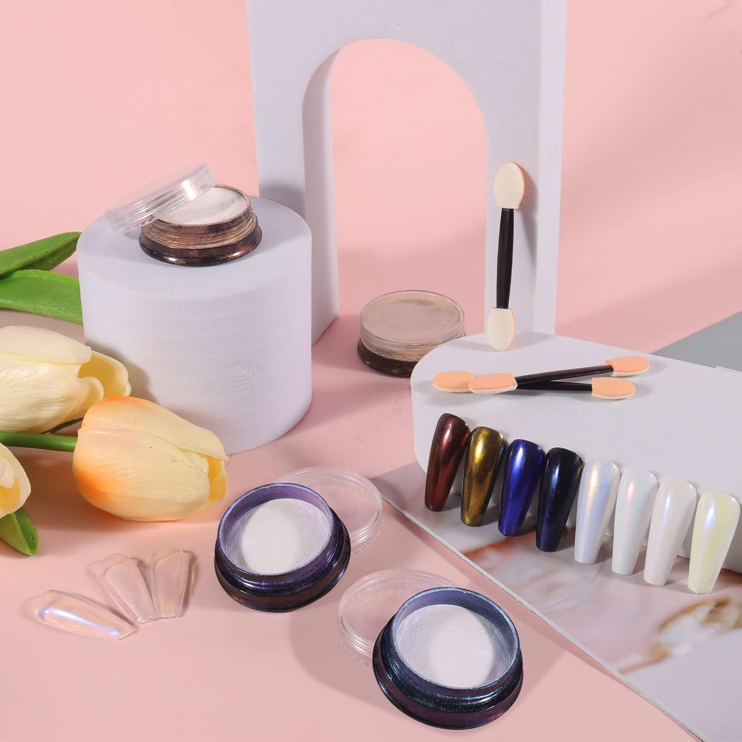 - 【Upgrade Package】: The upgraded whole jars are transparent, and you can easily recognize colors. Add a holder for chrome powder jars, and wrap them in a little box to easily organize them and carry them out. New or Old packages will deliver randomly.