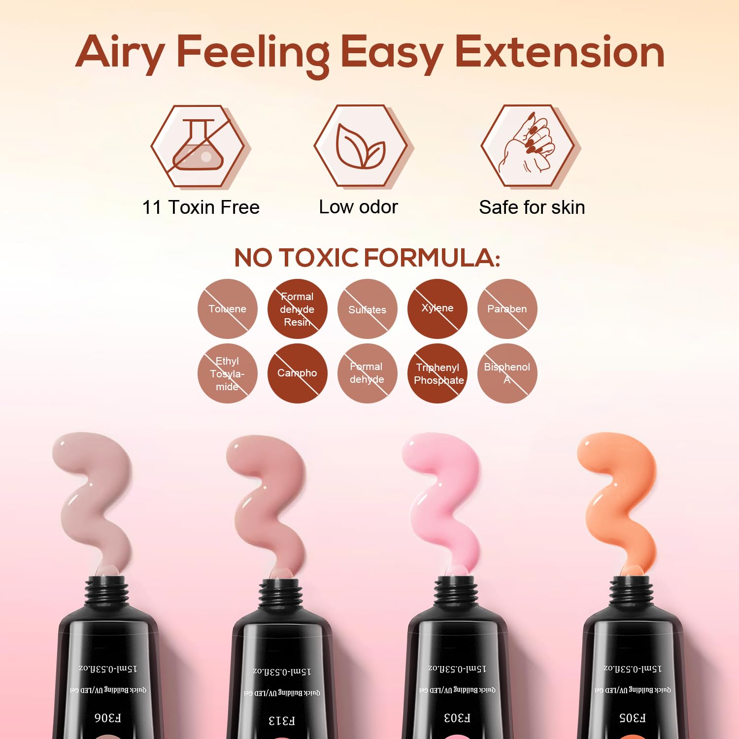 - Healthy,Natural,Strong,Flexible:JEWHITENY poly gel made with non-toxic ingredients keeping your nails healthy with a low odor formula!Has high strength and toughness without cracking or peeling. superior to other nail extension products, and fits your nails seamlessly。The new upgraded formula makes your lengthened nails as flexible, strong and lightweight as natural growing nails.
