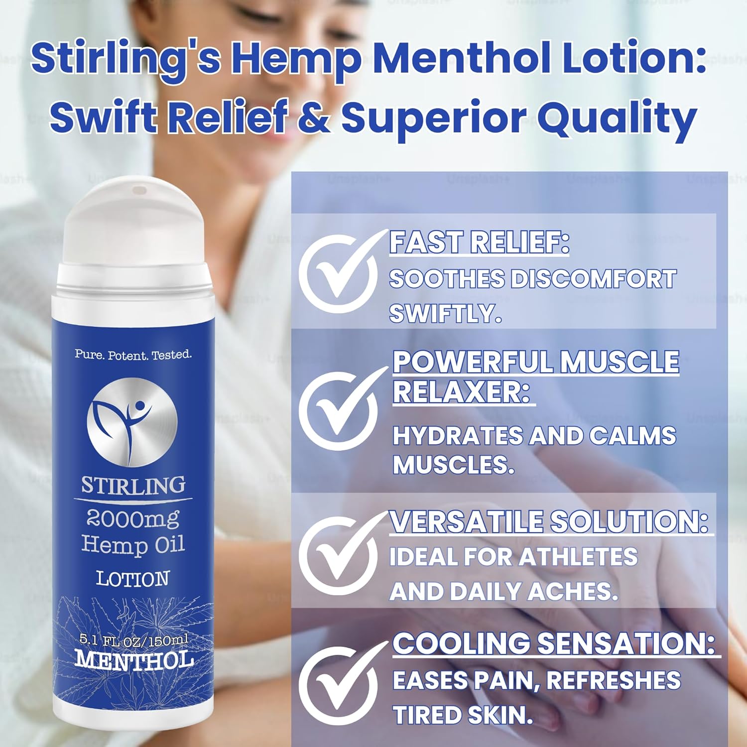 - π±[π£π₯ππ ππ¨π -π€π¨ππππ§π¬] Stirling Menthol Lotion is 100% Vegan, THC-Free, and Paraben-Free. Made with premium, non-GMO, USA-grown hemp oil, processed in a food-grade facility, and cruelty-free β because your skin deserves the best care. Our Organic Lotion Moisturizer keeps your skin healthy and hydrated, made from natural ingredients for a gentle, nourishing experience.
