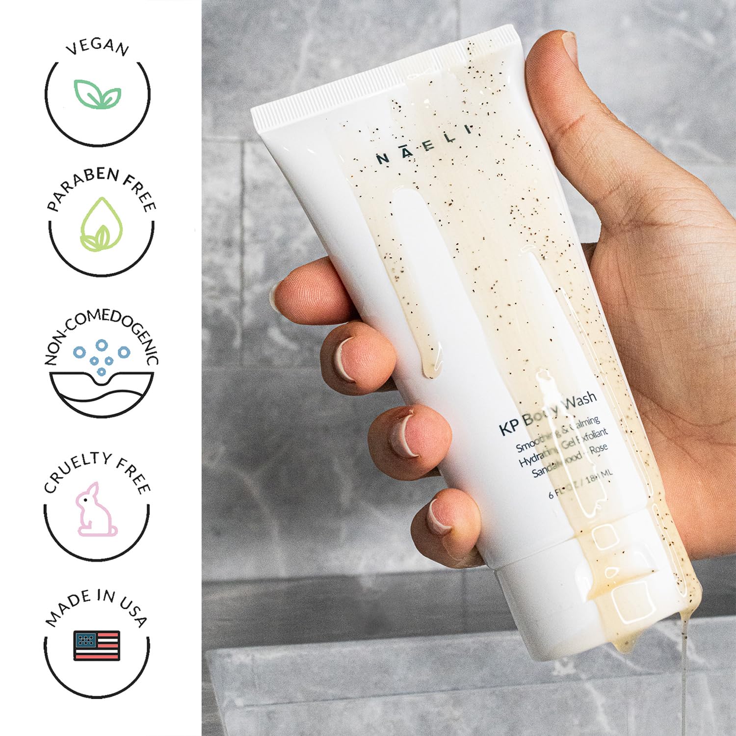 NAELI Keratosis Pilaris & Acne Exfoliating Body Wash Cleanser with 14% Glycolic & Salicylic Acid - Natural KP Bump Eraser & Strawberry Legs Treatment, Back & Butt Acne - Smooths & Hydrates, 6 oz