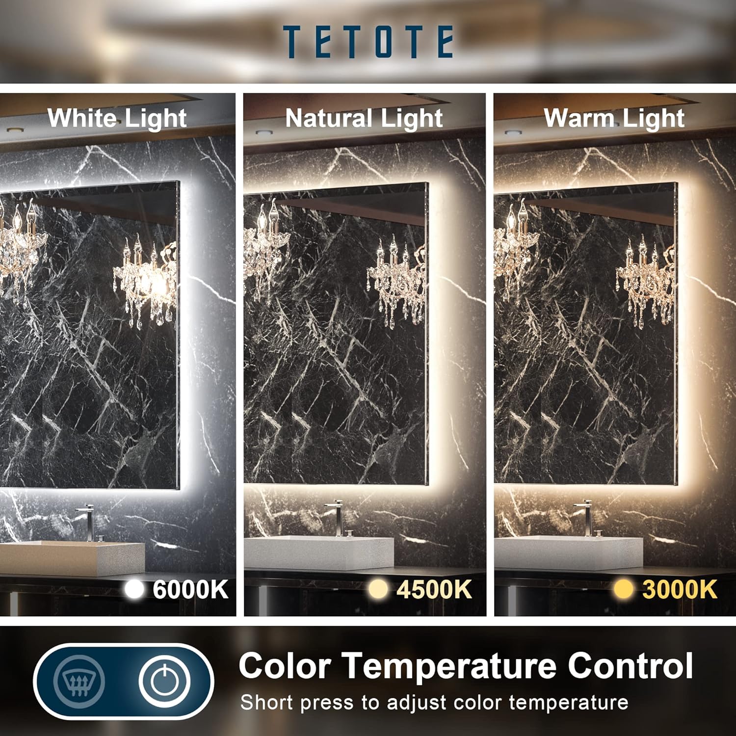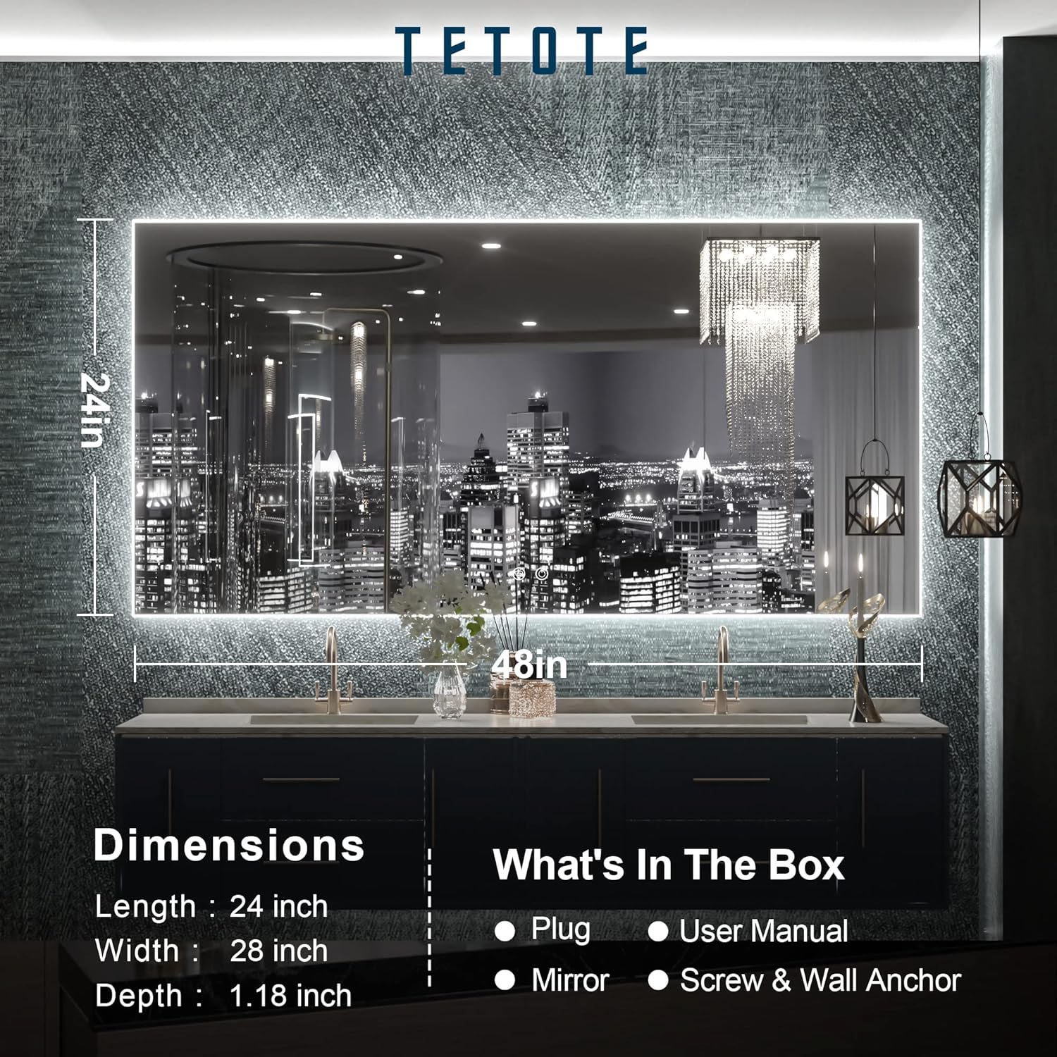 - ✨【Reliable packing & Easy installation】-TETOTE mirror is secured by reinforce foam box with extra protection.Plug and screws included.Installed with plug or hardwired,horizontal or vertical all by your choice.
