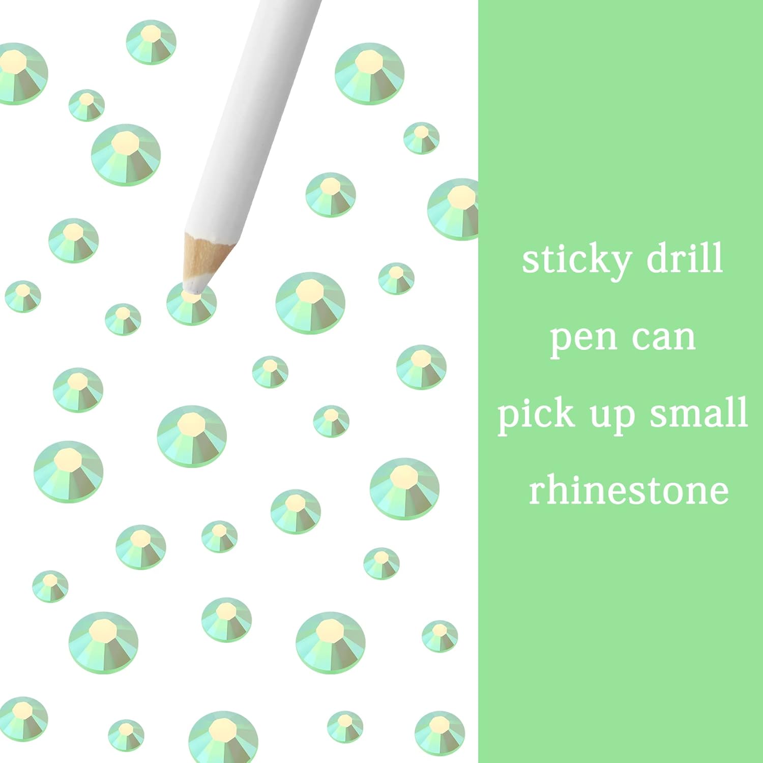 - 3 Sizes Rhinestones Set with Pick Up Pen: 2050 pcs per box. Round flat backs &Non Hotfix, SS10 (3mm) 1100PCS, SS16 (4mm) 600PCS / SS20(5mm) 350PCS.