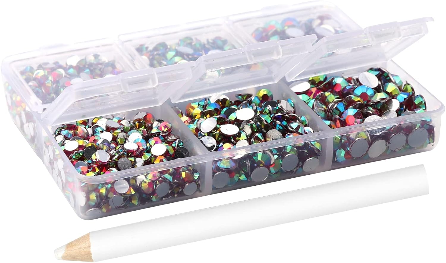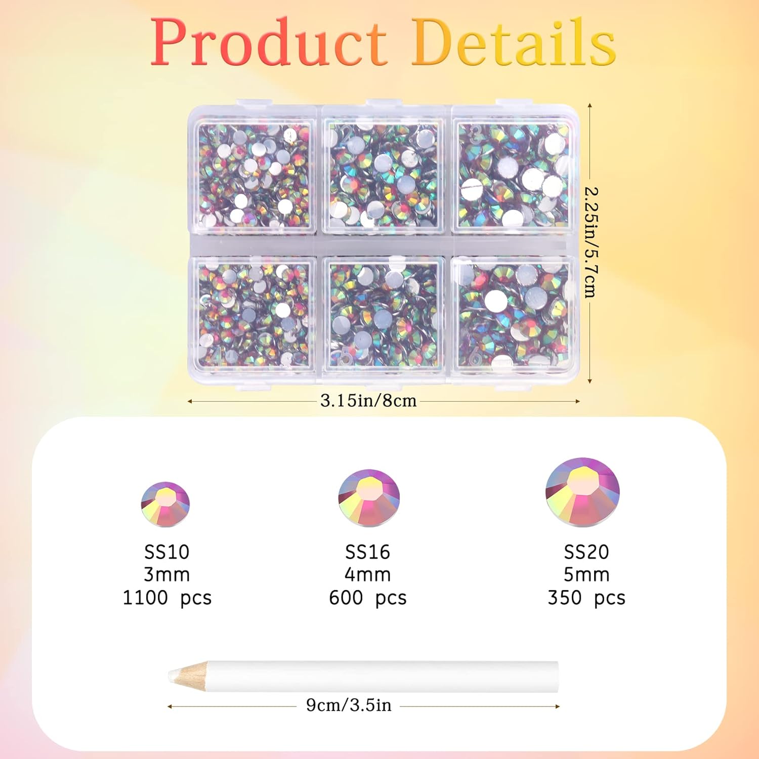 - 3 Sizes Rhinestones Set with Pick Up Pen: 2050 pcs per box. Round flat backs &Non Hotfix, SS10 (3mm) 1100PCS, SS16 (4mm) 600PCS / SS20(5mm) 350PCS.