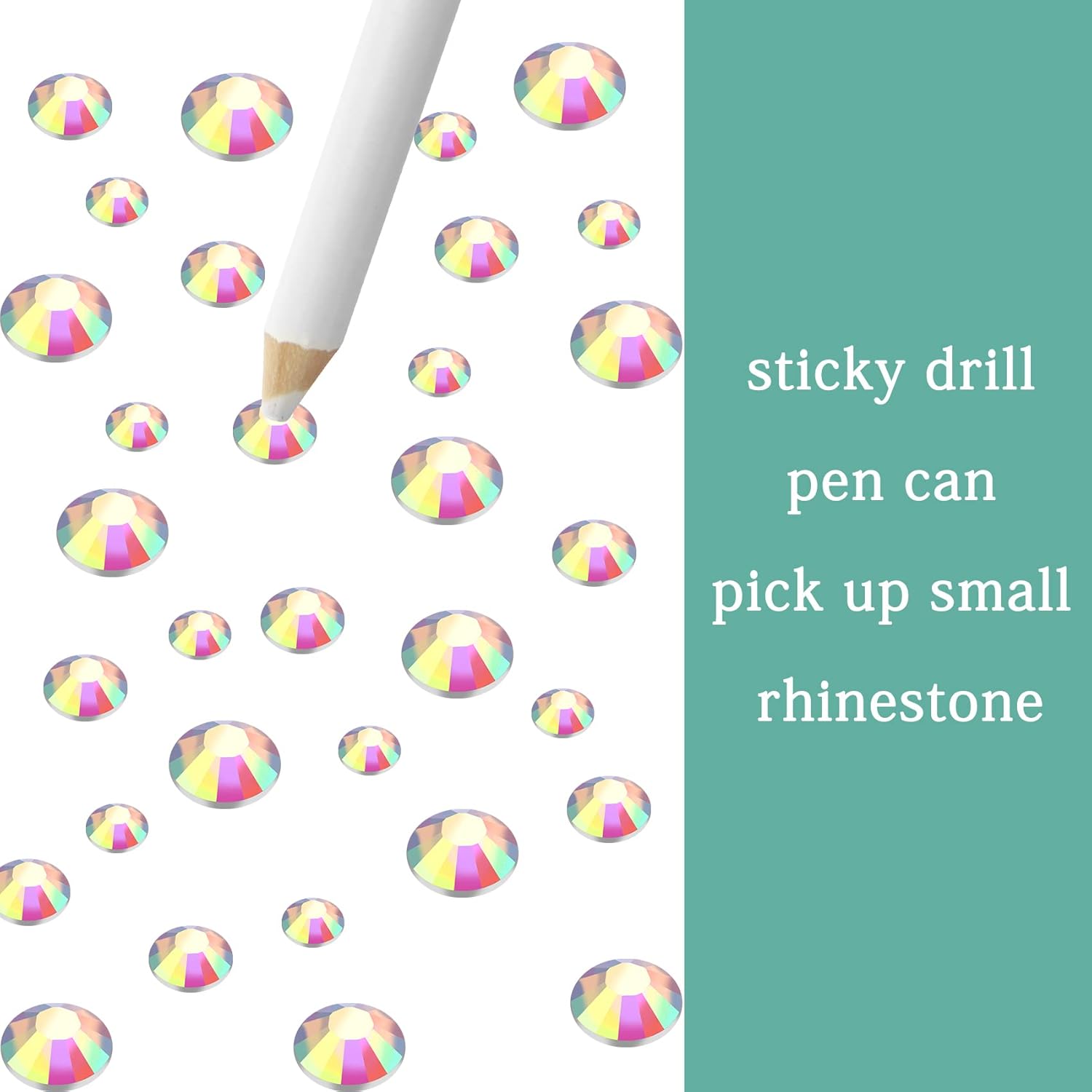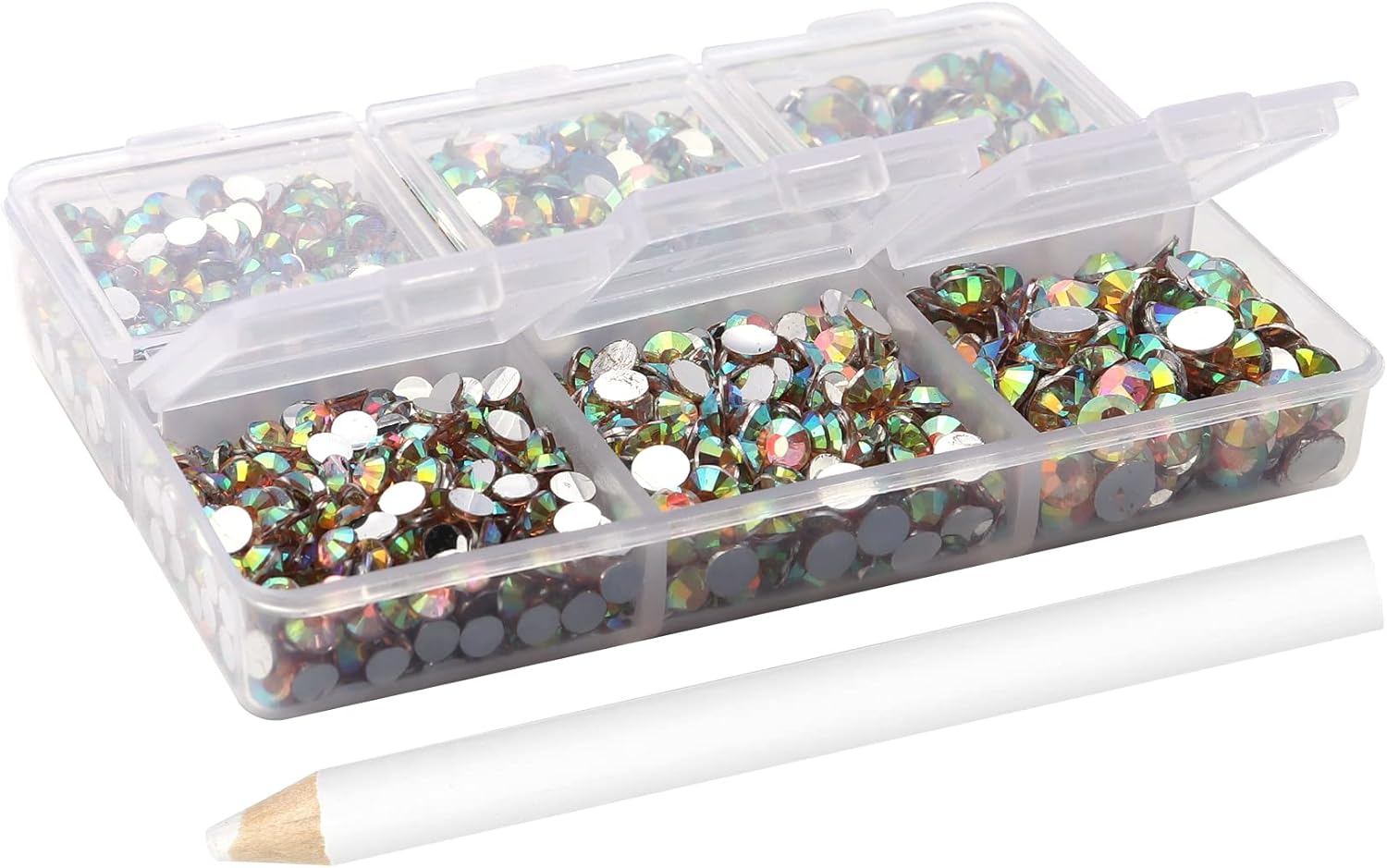- 3 Sizes Rhinestones Set with Pick Up Pen: 2050 pcs per box. Round flat backs &Non Hotfix, SS10 (3mm) 1100PCS, SS16 (4mm) 600PCS / SS20(5mm) 350PCS.