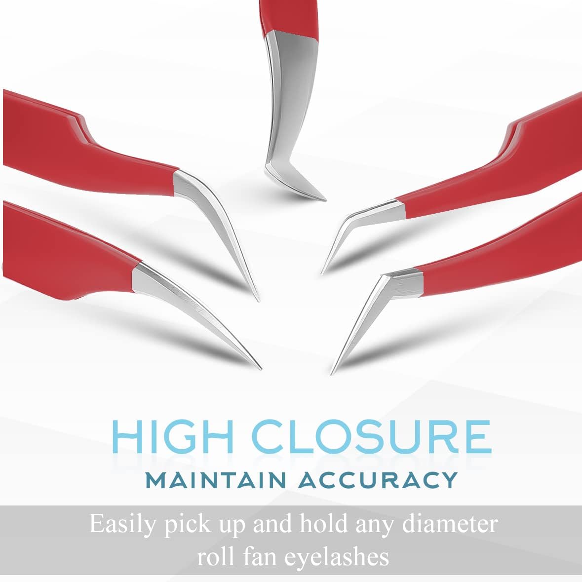 SIVOTE Eyelash Extension Tweezers for Classic & Volume Lashes, 5-Pack, Red