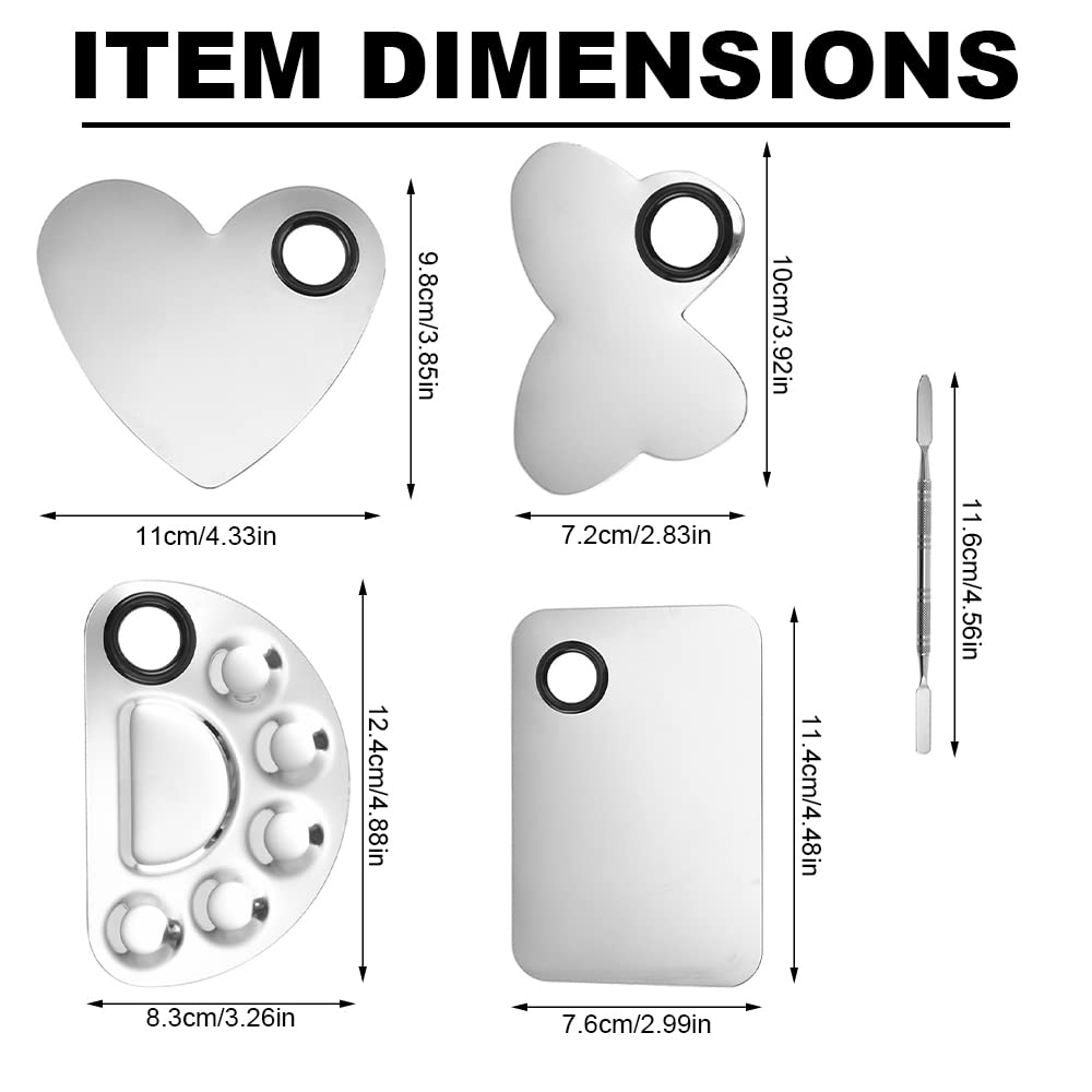- 【Good Combination】4 sets of makeup palettes in square, semicircle, butterfly, heart shaped, coming with 4 pieces spatulas, perfect to custom multiple blending of colors simultaneously.