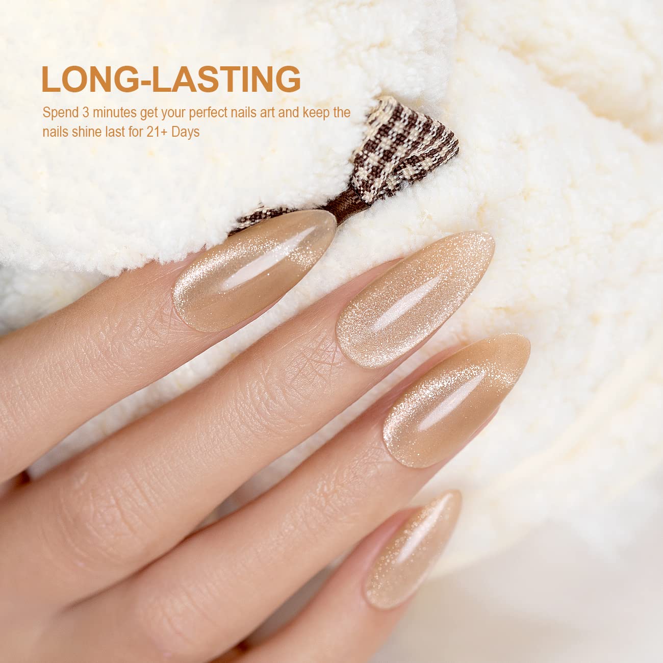 - EASY TO APPLY:This nude color cat eye gel polish is made with with natural resin ingredients,magnetic shimmers,translucent pigments and a smooth formula,so this gel polish set won't cause smudges cracks, or chips.It can last for 21+ days with perfect shine under proper application