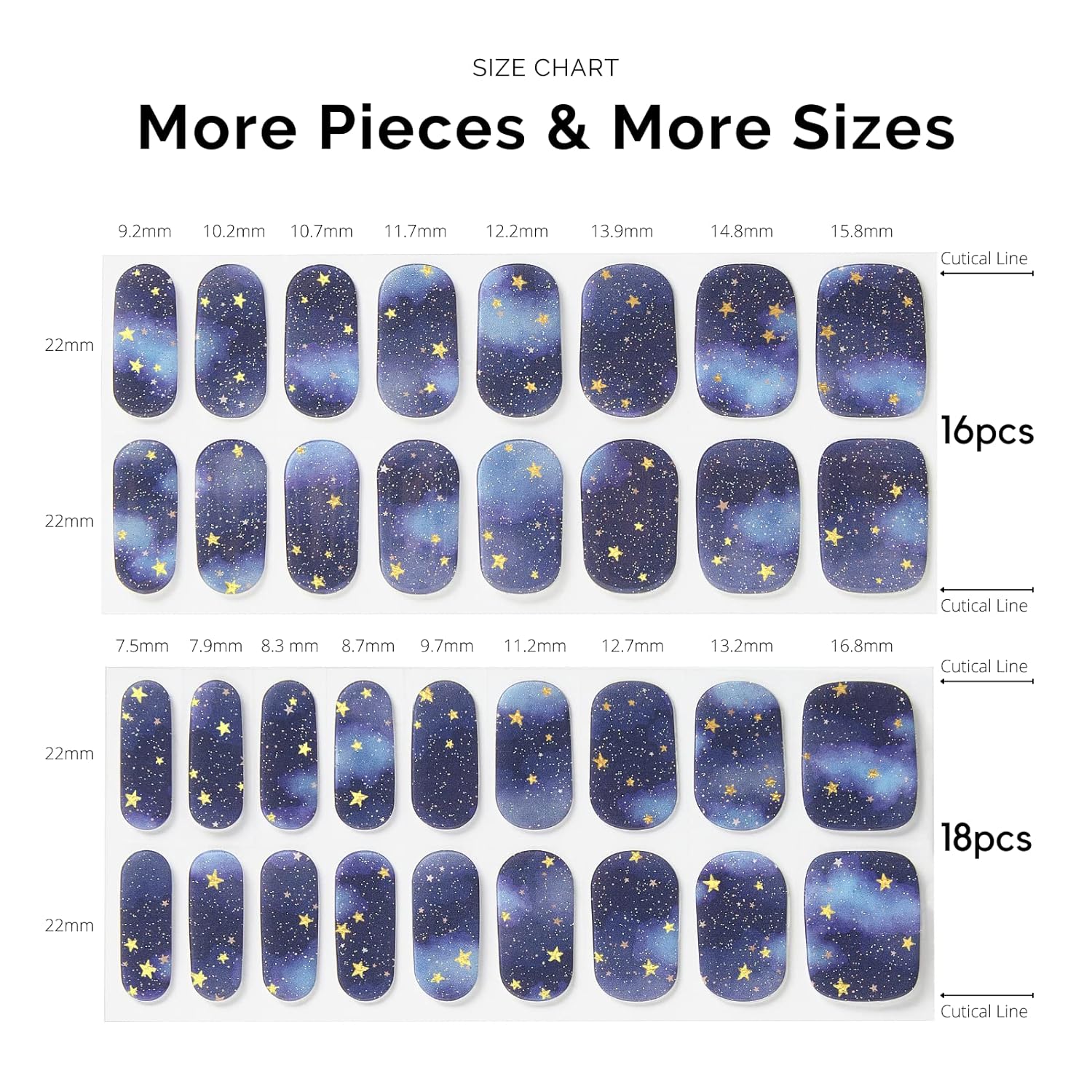 Nailog Semi Cured Gel Nail Strips 34 pcs| Long Lasting Nail Polish Sticker Wraps with Glossy Gel Finish, Starry Night