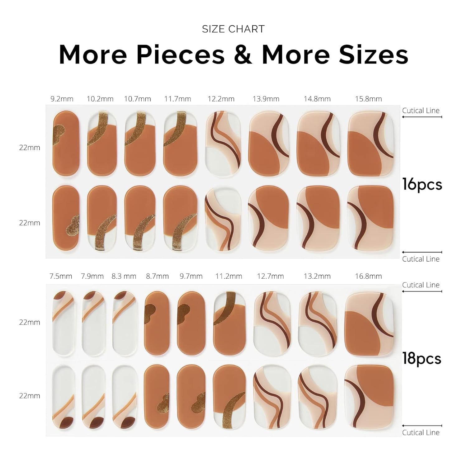 - 【34 PCS NAIL STRIPS】More Quantity & Sizes than Ever! - With 17 different sizes of our nail art stickers, you can easily find the right size to match your nails. - New curved side line fits even better with your nail shape for seamless adhesion.