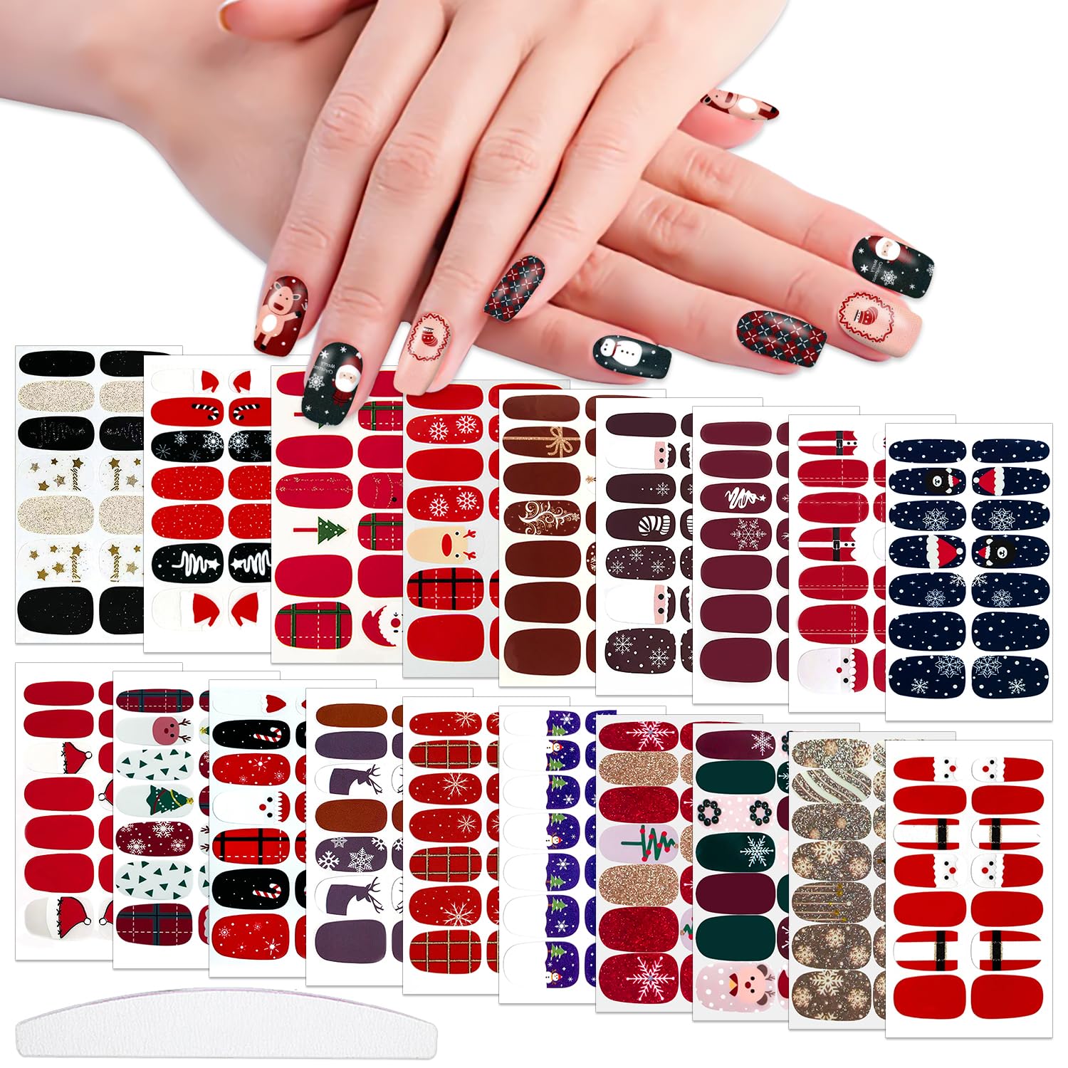 - 【Very Easy To Use】: Our Christmas full nail wraps are self adhesive , No drying time and sticky well. Chose any design you like and a size fited to stick on nails gently, and just peel it off when you want to remove it , nothing would hurt your nails but protect them ! (You can read the detalis of instruction in the descraption under this page)