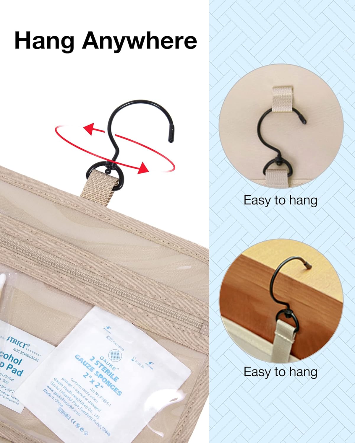- ๐๐จ๐ง๐ฏ๐๐ง๐ข๐๐ง๐ญ ๐๐๐ฌ๐ข๐ ๐ง: Stow-away 360-degree swivel non-slip metal hook for versatile hanging options; carry handle doubles as its hanging strap; two-way zipper closure for quick access