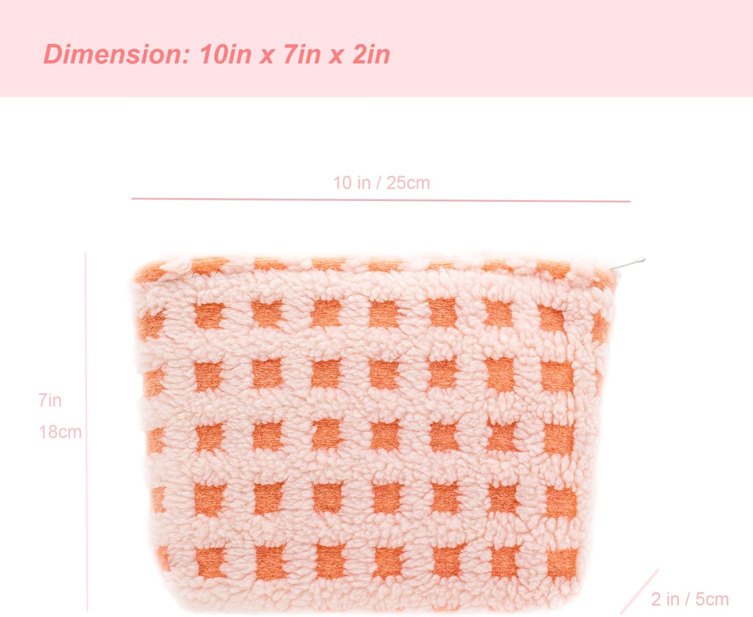 Makeup Bags for Purse Zipper Cosmetic Pouch Large Travel Make Up Organizer Tool Pouch for Women and Girls,Fleece Pink