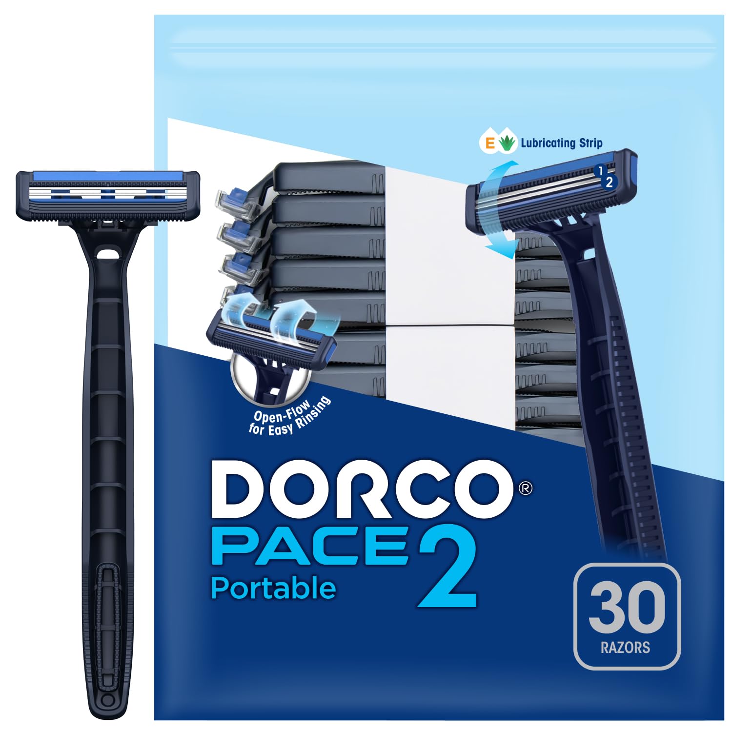 Dorco Pace 2 Disposable Razors for Men (30ct), 2 Blades Shaving Razor, Open-Flow for Easy Rinsing, Lubricating Strip for a Comfortable Shave, Ideal for Travel and Everyday Use