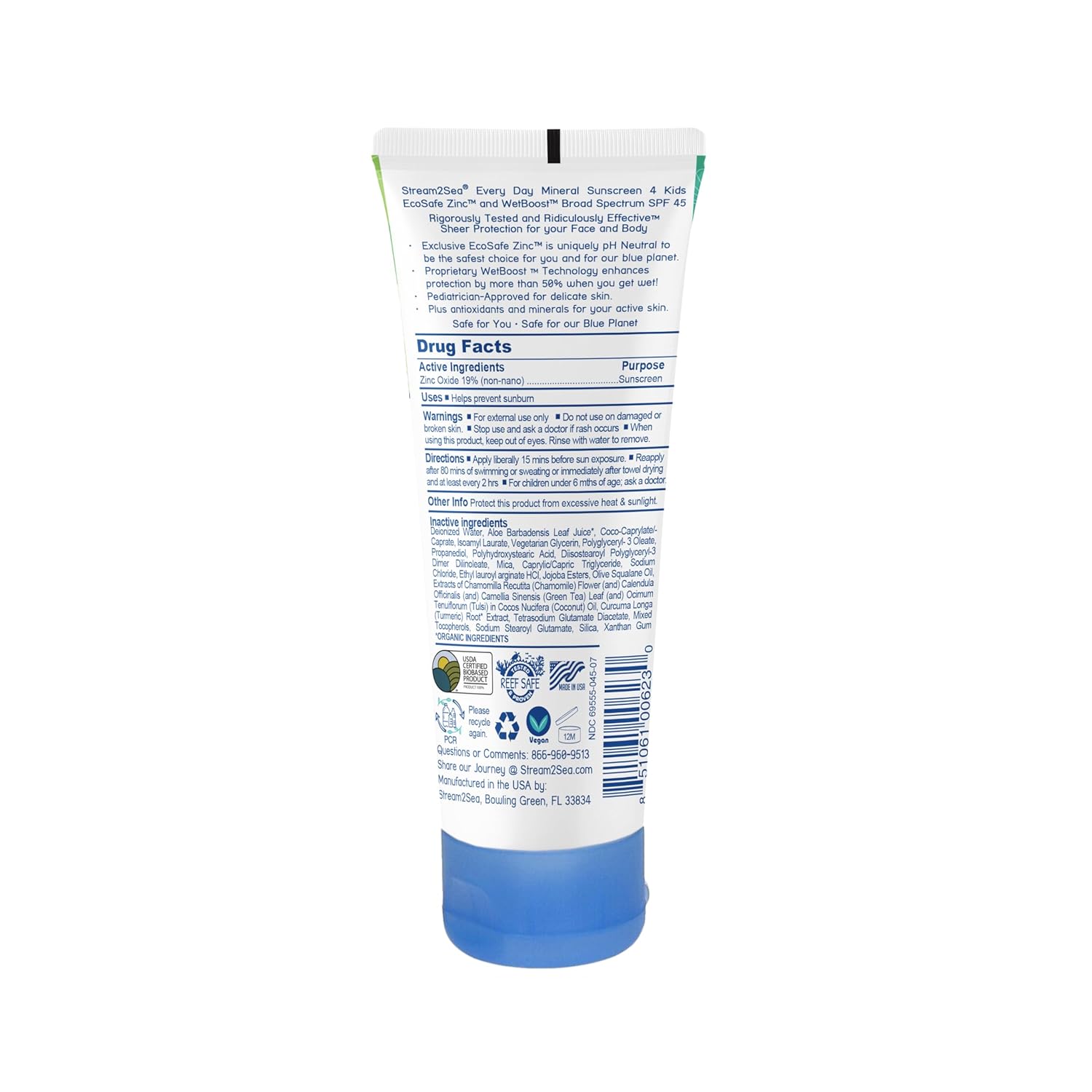 SPF 45 Every Day Kids Mineral Sunscreen | 2.5 Fl Oz Biodegradable, Paraben Free & Reef Safe Sunscreen for Face & Body for Kids | Non-Greasy, Lightweight & Sheer Mineral Protection Against UVA & UVB