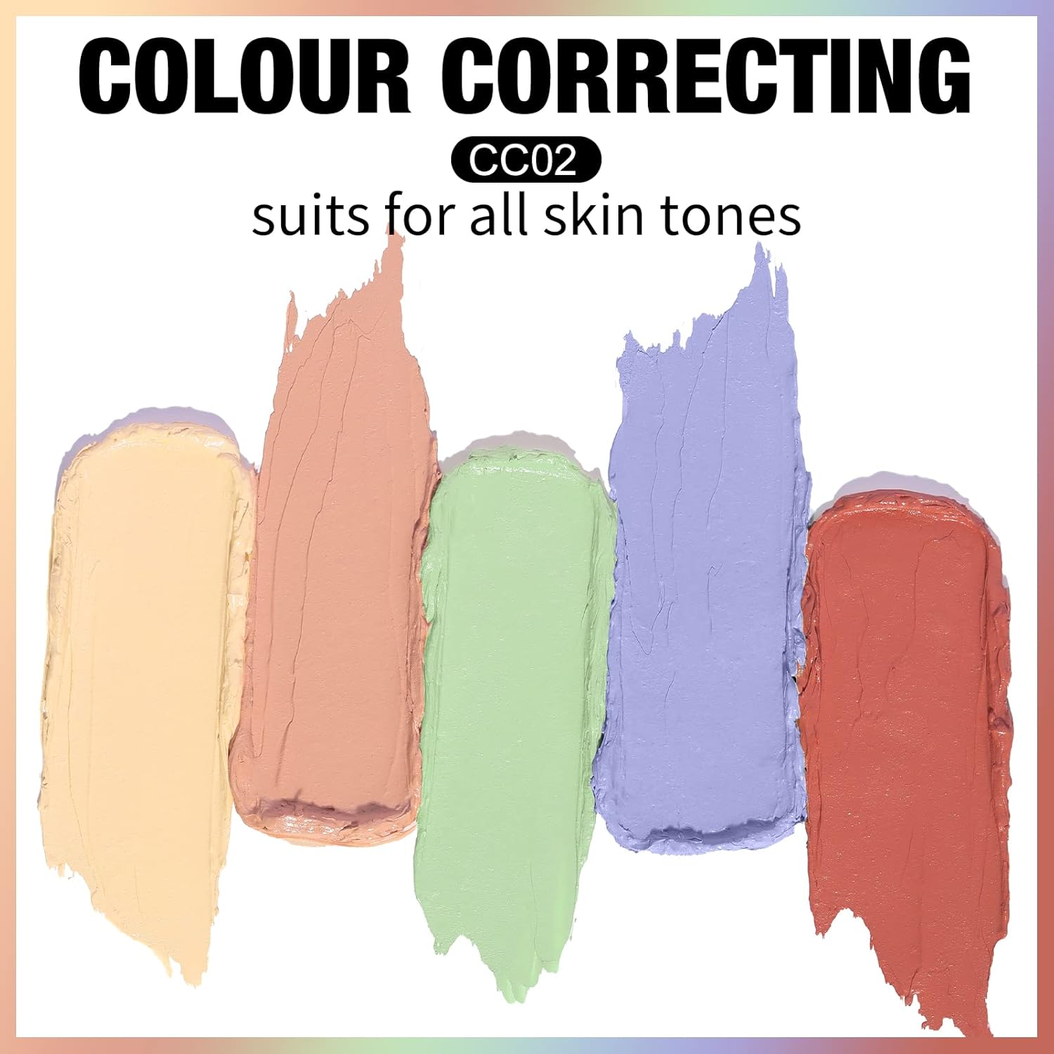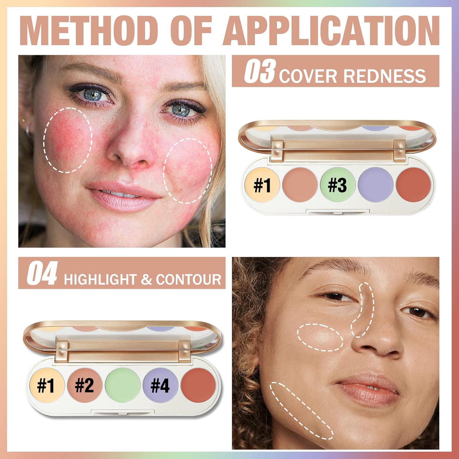 FOCALLURE #GoldenAge 5 in 1 Multi Uses Concealer Palette, 5 Colors Correcting Conceal Palette, Camouflage Contour Palettes for Dark Circles, Face Contouring Highlighter Pallet, CC02 COLOUR CORRECTING