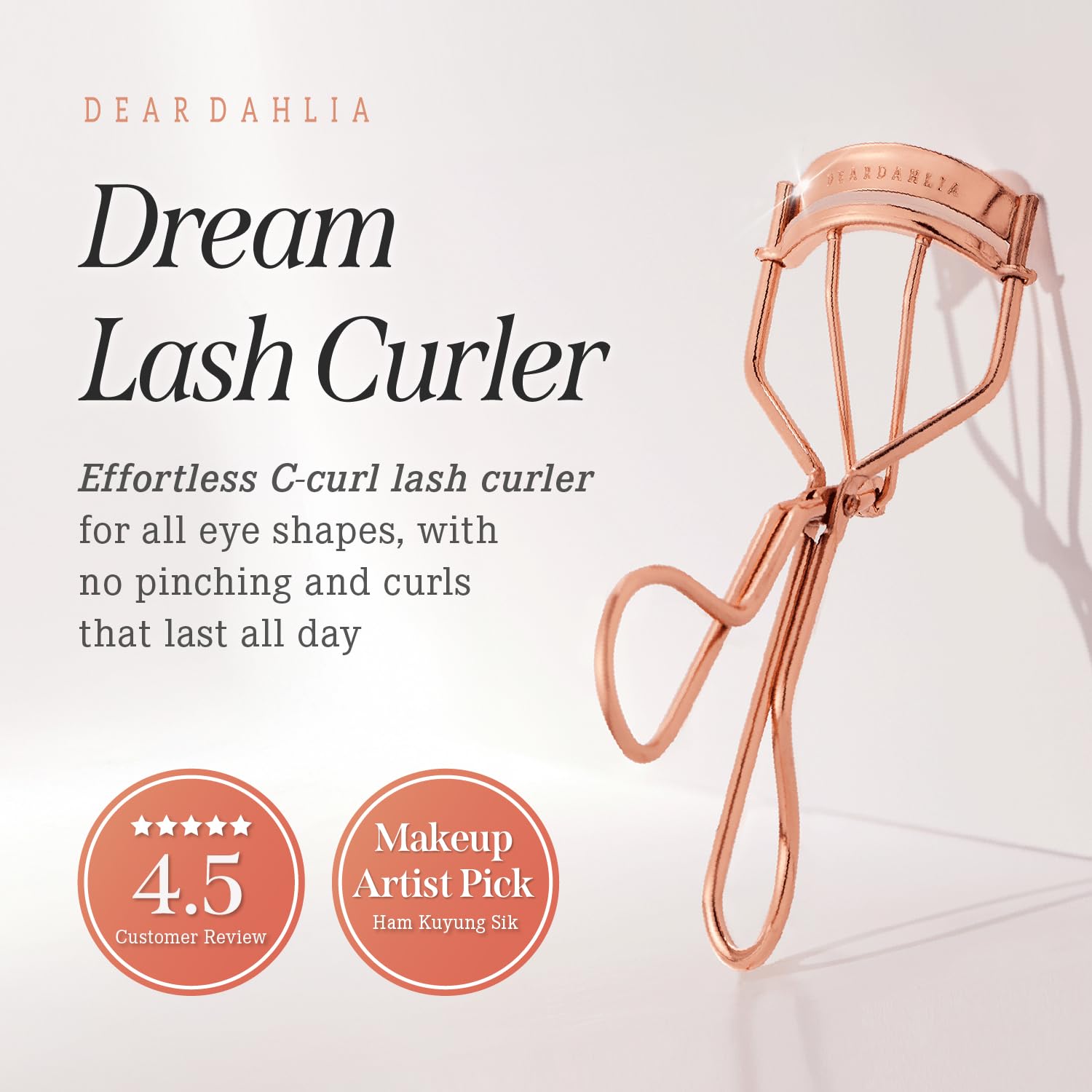 DEAR DAHLIA Dream Eyelash Curler - Premium Volume-Up Curl, Wide Opening, Pinch-Free Design. Painless with Comfort Grip & 2 Silicone Refill Pads Included. Made in Korea