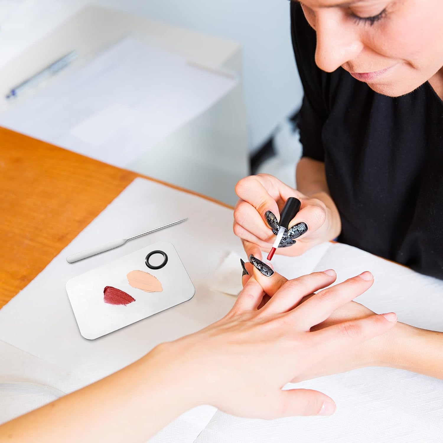 - DIY Liquid Foundation: The Stainless Steel Makeup Spatula and Palette Set is used to adjust the color of the liquid foundation, neutralize and evenly mix the liquid foundation to create a suitable foundation color.