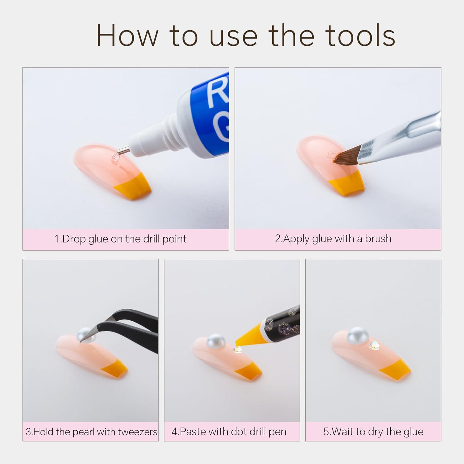 - Useful tools - These pearls and rhinestones have a flat back, which is excellent for easy placement.and you can pick up any large or small pearls and rhinestones with the crayons we bring along. And use the brush to smooth out the Gel, these tools will work very well