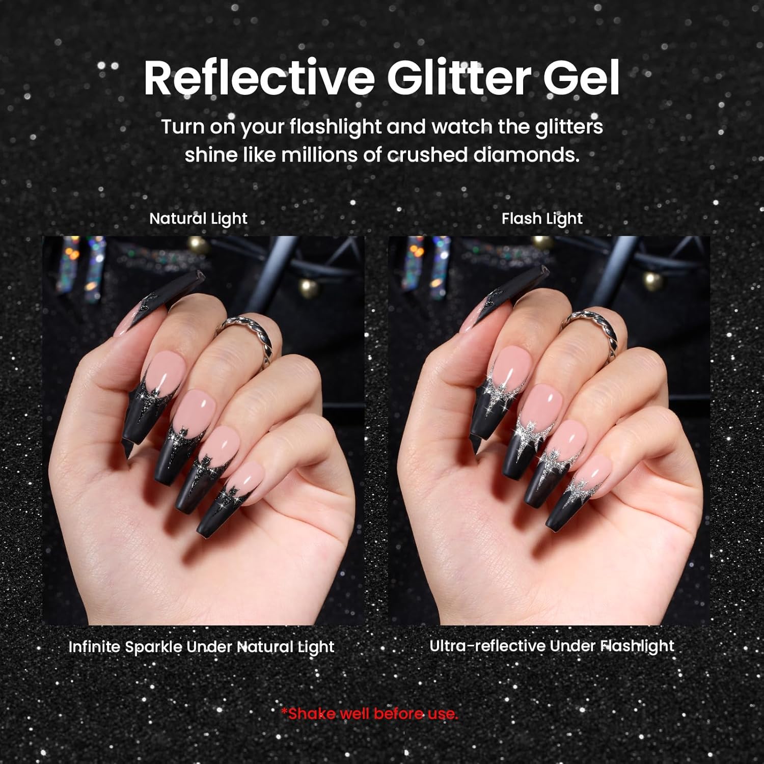 - 【Sparkle & Reflective】: When Beetles Glitter Nail Art Gel Liner Nail Polish exposed to direct flashlight or sunlight, it illuminates with vibrant lights, resulting in a striking effect resembling that of diamond nails. Whether it's a party or a festival, whether in a midnight club or a formal banquet, this sparkling touch of diamonds cascade is indispensable, captureing everyone's gaze.