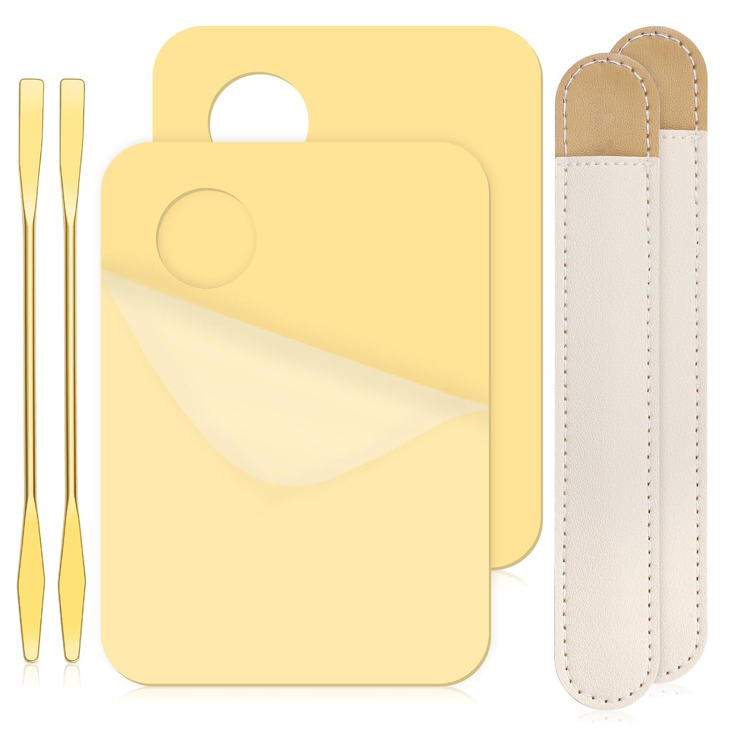 - Package Includes: You will get 2 acrylic makeup palette, 2 Korean makeup spatula tool and 2 leather case, you can use the stainless steel makeup spatula and palette set to adjust the color of the liquid foundation.