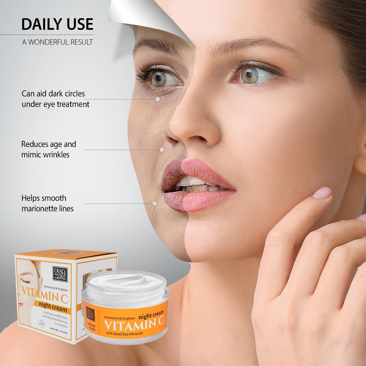 Dead Sea Collection Night Cream for Face with Vitamin C, Dead Sea Minerals, and Vitamin E – Anti Aging Nourishing Skin Care Moisturizer to Reduce Wrinkles (1.69 fl. oz)