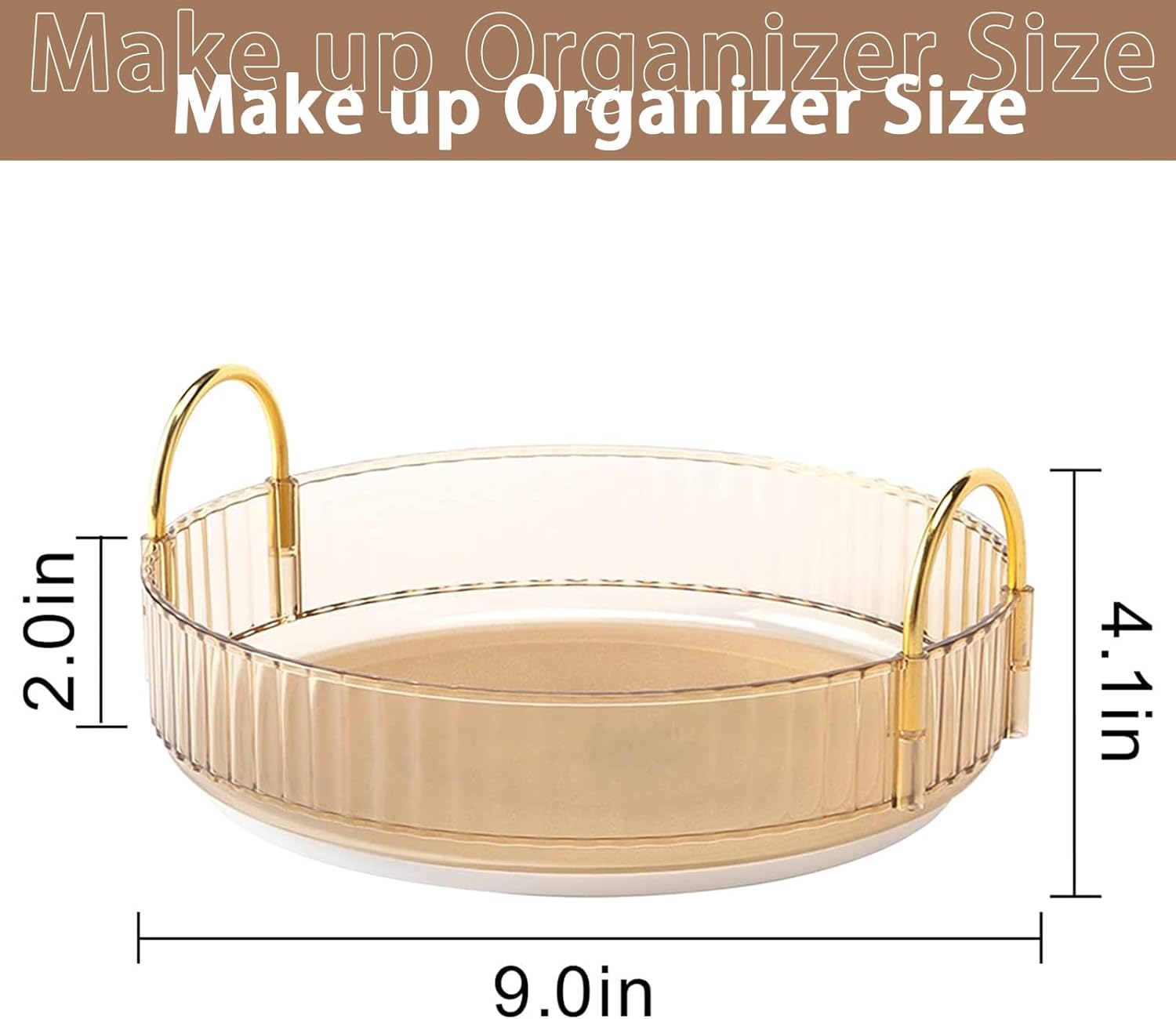 - mooth Rotation: 360 degree rotation makes it easier to find what you need and brings you a convenient using experience. Tray edges are 1.96'' high to ensure that cosmetics do not fall out when