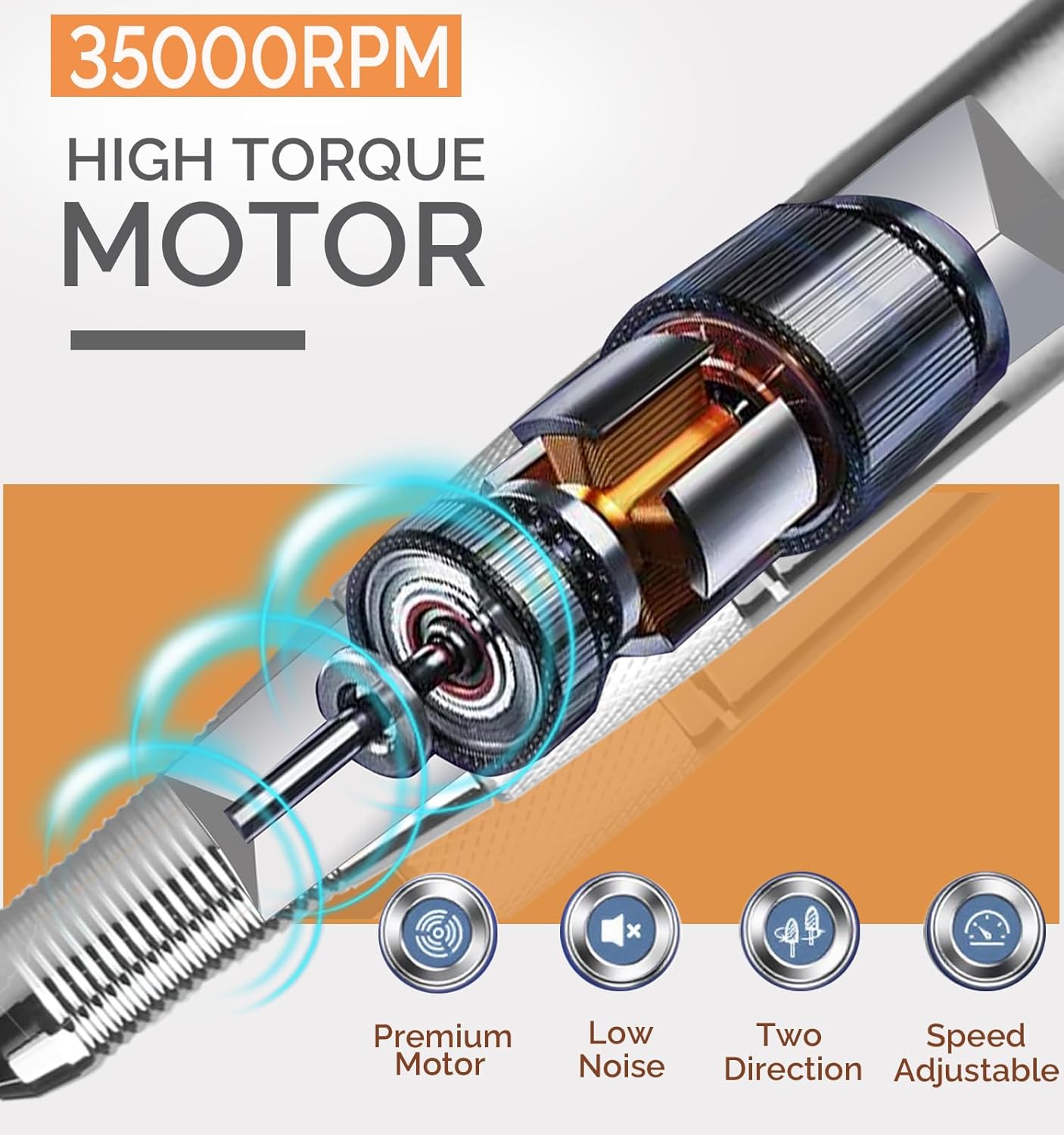 - 【Salon-Grade Power & Precision】 35000 RPM adjustable speed (via easy-turn rotary dial) makes this professional nail drill perfect for acrylic/gel removal, cuticle trimming, callus smoothing, and even intricate nail art. Vibration-free motor ensures steady control—whether you’re a beginner practicing at home or a pro handling back-to-back salon clients.