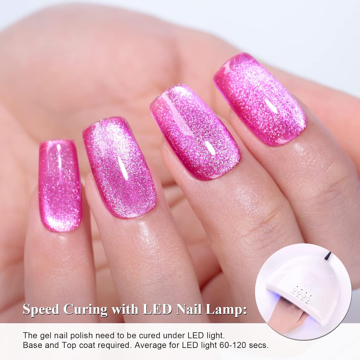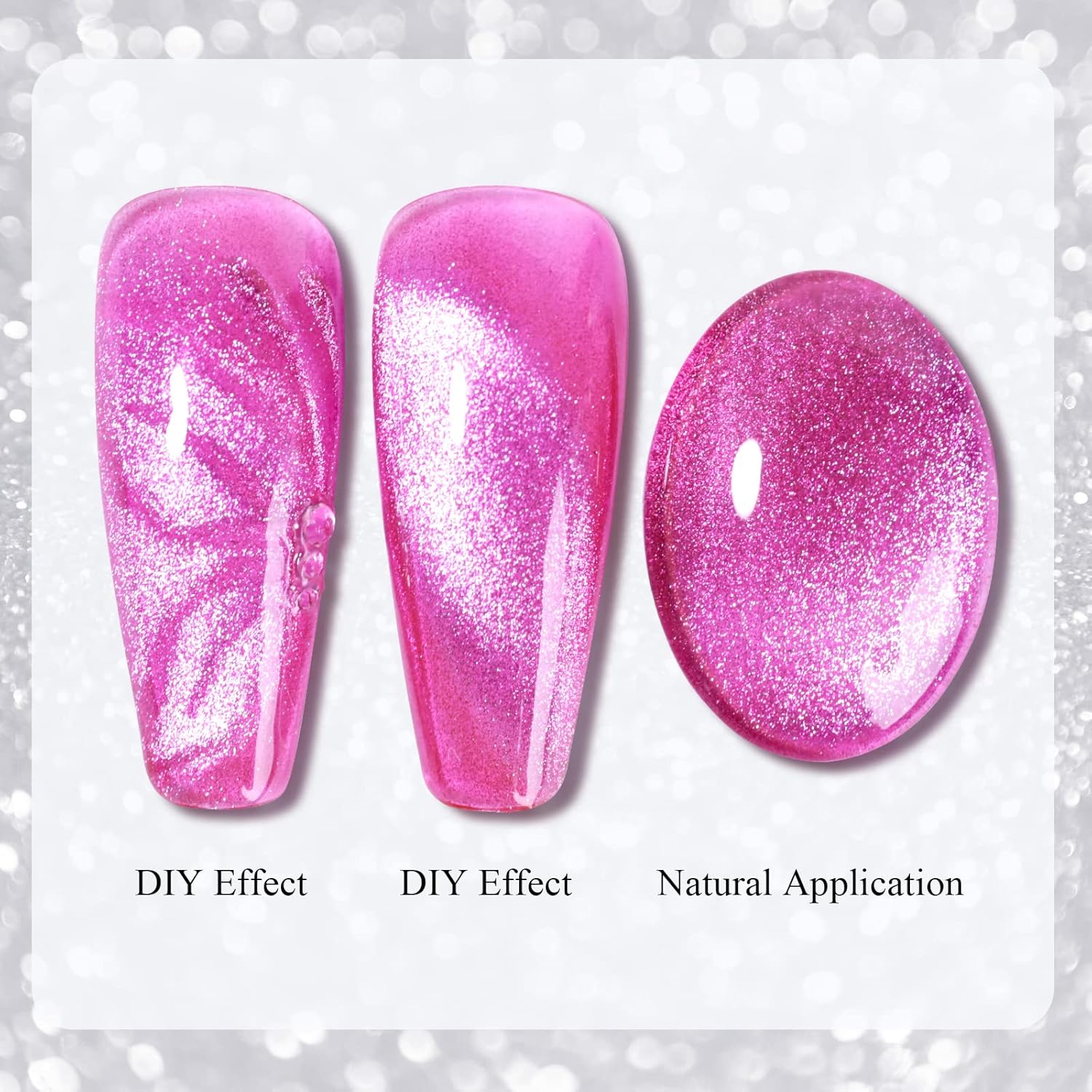 Imtiti Medium VioletRed Color Gel Nail Polish, 0.5 fl oz Holographic 9D Cat Eyes Glitter Magnetic Gel Polish with Magnetic Stick for Nail Salon