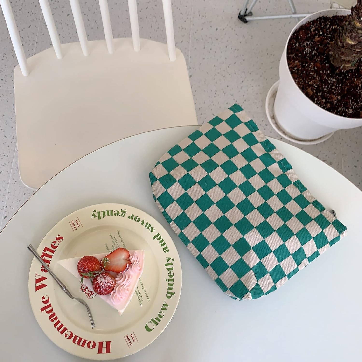 PAZIMIIK Makeup Bag Large Zipper Corduroy Make Up Pouch for Purse Travel Canvas Cosmetic Organizer for Women Brush Storage,Checkered Green