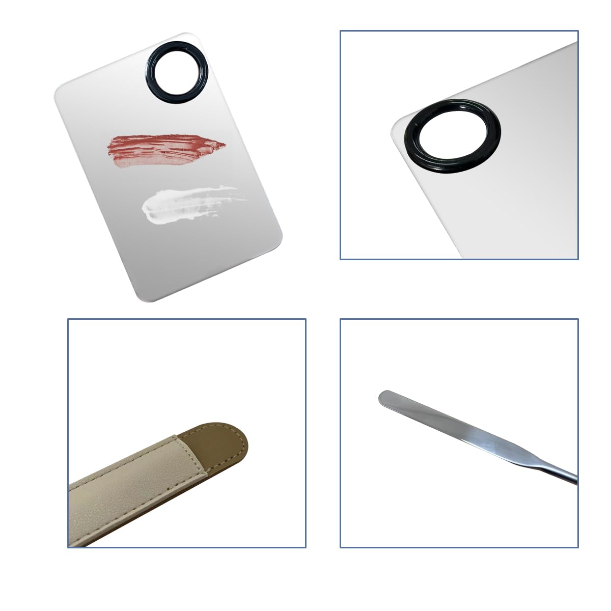 - DIY liquid foundation: This stainless steel makeup spatula and palette set can be used to adjust the color of liquid foundation, the stainless steel spatula can mix the liquid foundation evenly, and create a foundation color that suits your skin color. With this palette, you will never get your hands dirty.