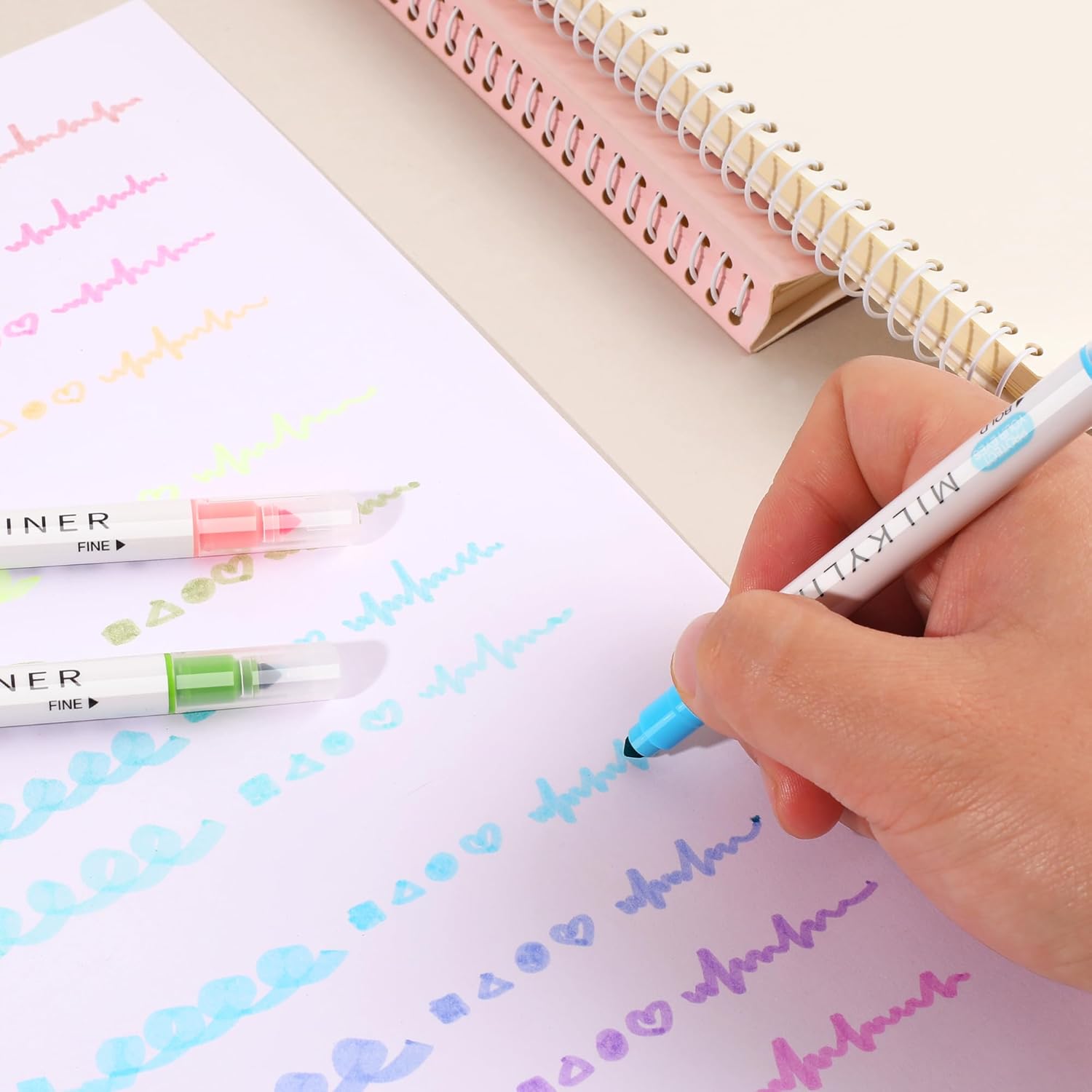 - Dual Tip: One 4.0mm chisel tip for highlighting and one 1.0mm fine tip for underlining. The wear-resistant fiber tips ensure even ink output and smooth writing. Perfectly meeting all your needs for highlighters. It can also be used for drawing, coloring, doodling, note taking and journaling.
