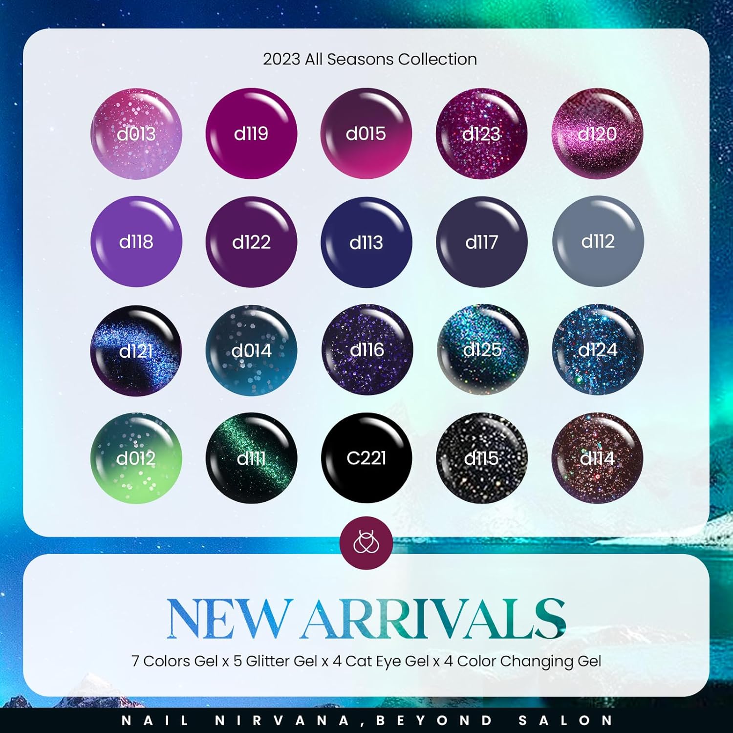 - Vibrant Colors: Featuring 20 color-changing cat eye glitter gel polish colors (5ml each) that provide vibrant hues and long-lasting shine for up to 28 days. The color number of cat eye gel is d120/d121/d125/d111,meet all your various cat-eye style demands.