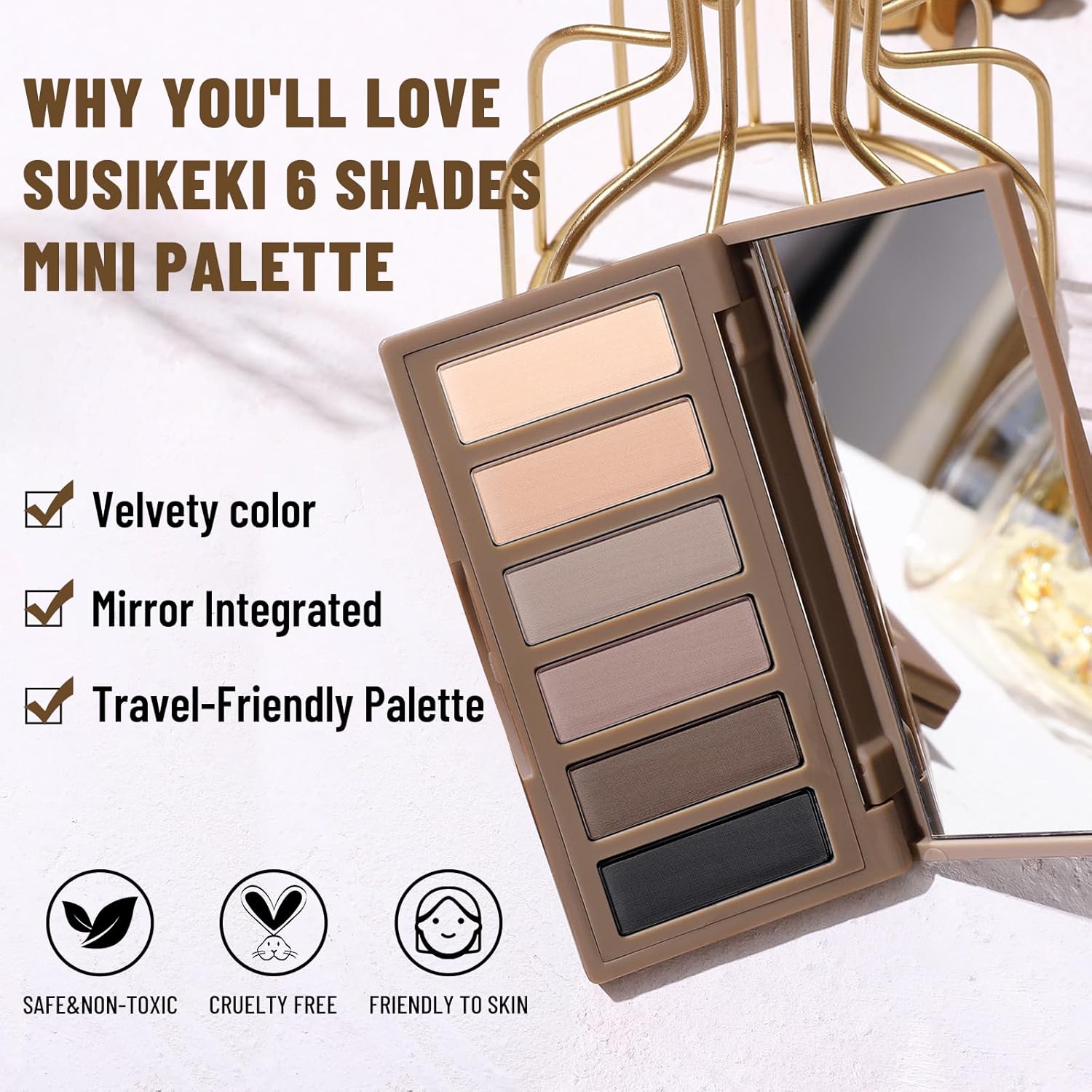 - 【Professional Neutral Tones】Elevate your eye makeup game with the SUSIKEKI min eyeshadow palette. This carefully curated pallet features six stunning shades of neutral tones, ranging from soft taupes to rich browns. Create versatile looks with ease, perfect for both makeup beginners and professionals.
