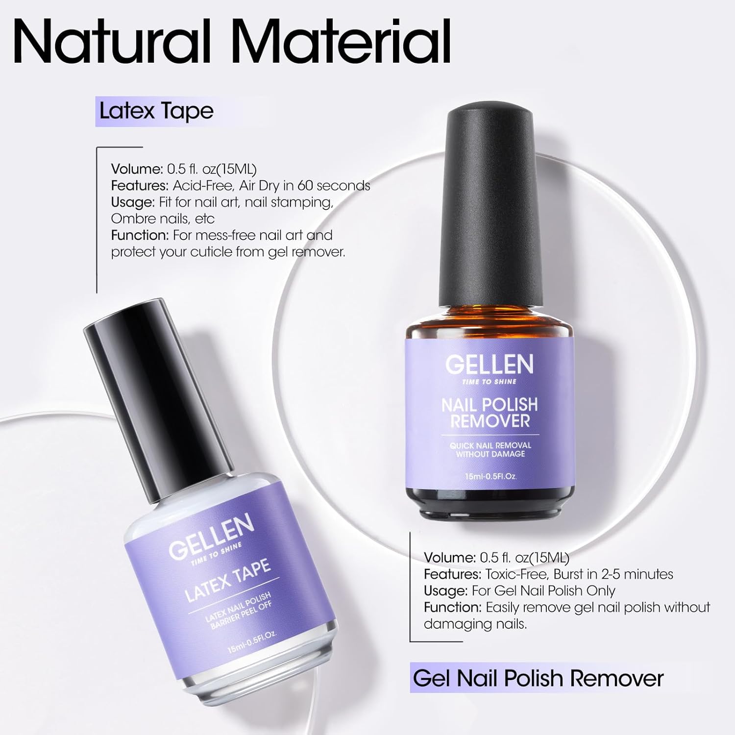 Gellen Gel Polish Remover Kit - Gel Nail Polish Remover with Latex Tape Peel Off Liquid and Manicure Tools, Quick & Easy Gel Polish Remover in 2-5 minutes, No Damage to Nails