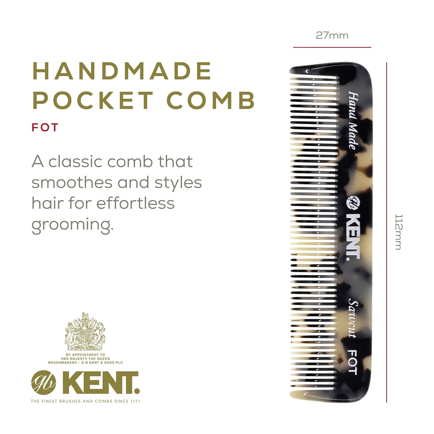 Kent FOT Tokyo White Fine Tooth Comb for Men - Handmade Pocket Comb for Travel, Styling, Fine or Thinning Hair, Mustache and Beard Care Handpolished Saw-Cut Made in England