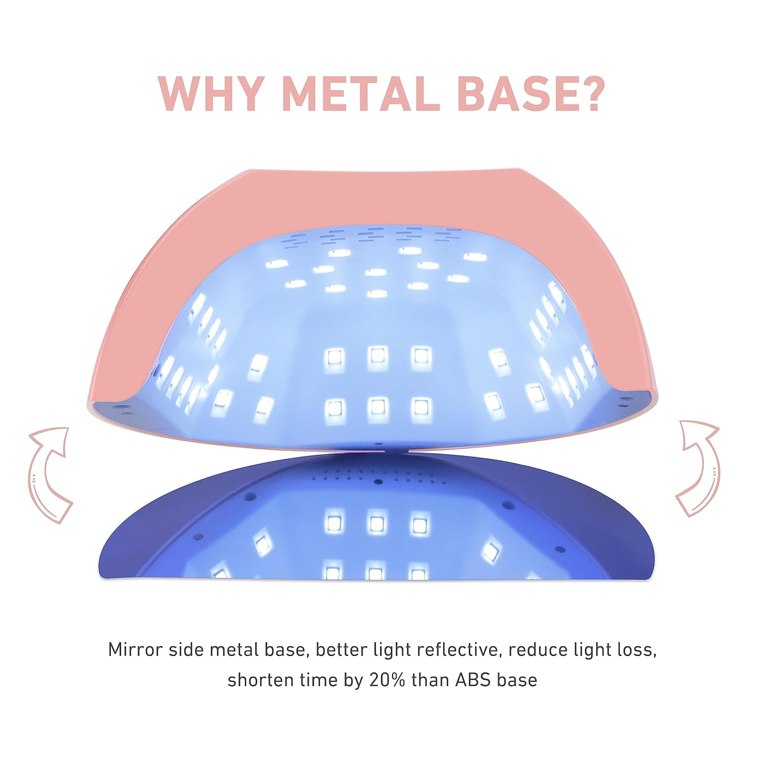 - 【80W High Power, More Efficient with Metal Base】With 80W high power and 42 evenly distributed light beads, our UV nail lamp dries polish from all angles in no time. Plus, the mirror side metal base ensures better light reflection, reducing light loss and shortening curing time by 20% compared to ABS bases.