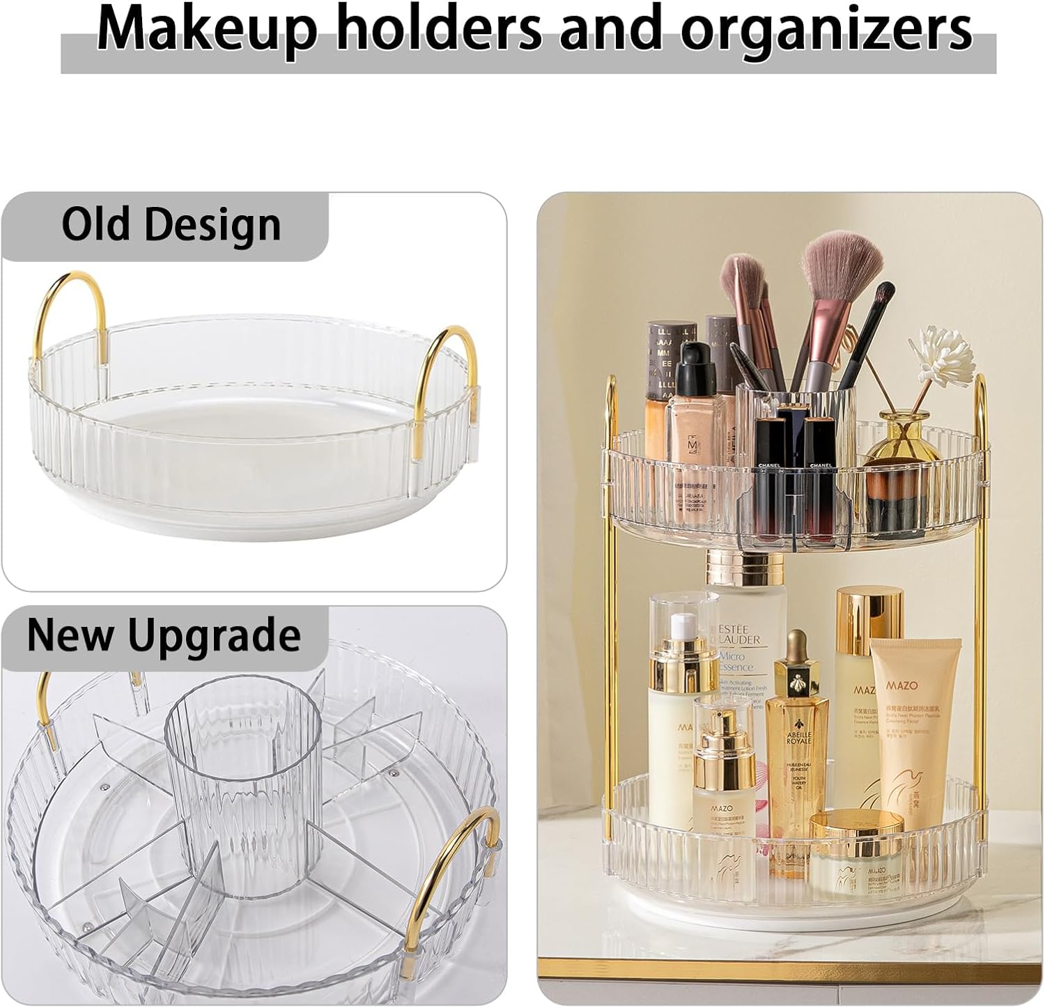 Rotating Makeup Organizer for Vanity, High-Capacity Skincare Clear Make Up Storage Perfume Organizers Cosmetic Dresser Organizer Countertop 360 Spinning (Clear, New-2 Tier)
