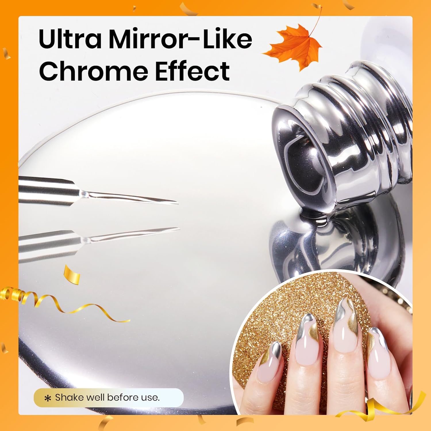 - Chrome Effect: Gel Liner Achieve a high-gloss, reflective surface with a professional-grade chrome effect. Perfect for making your nails stand out on any occasion. Tip: Always shake before use!