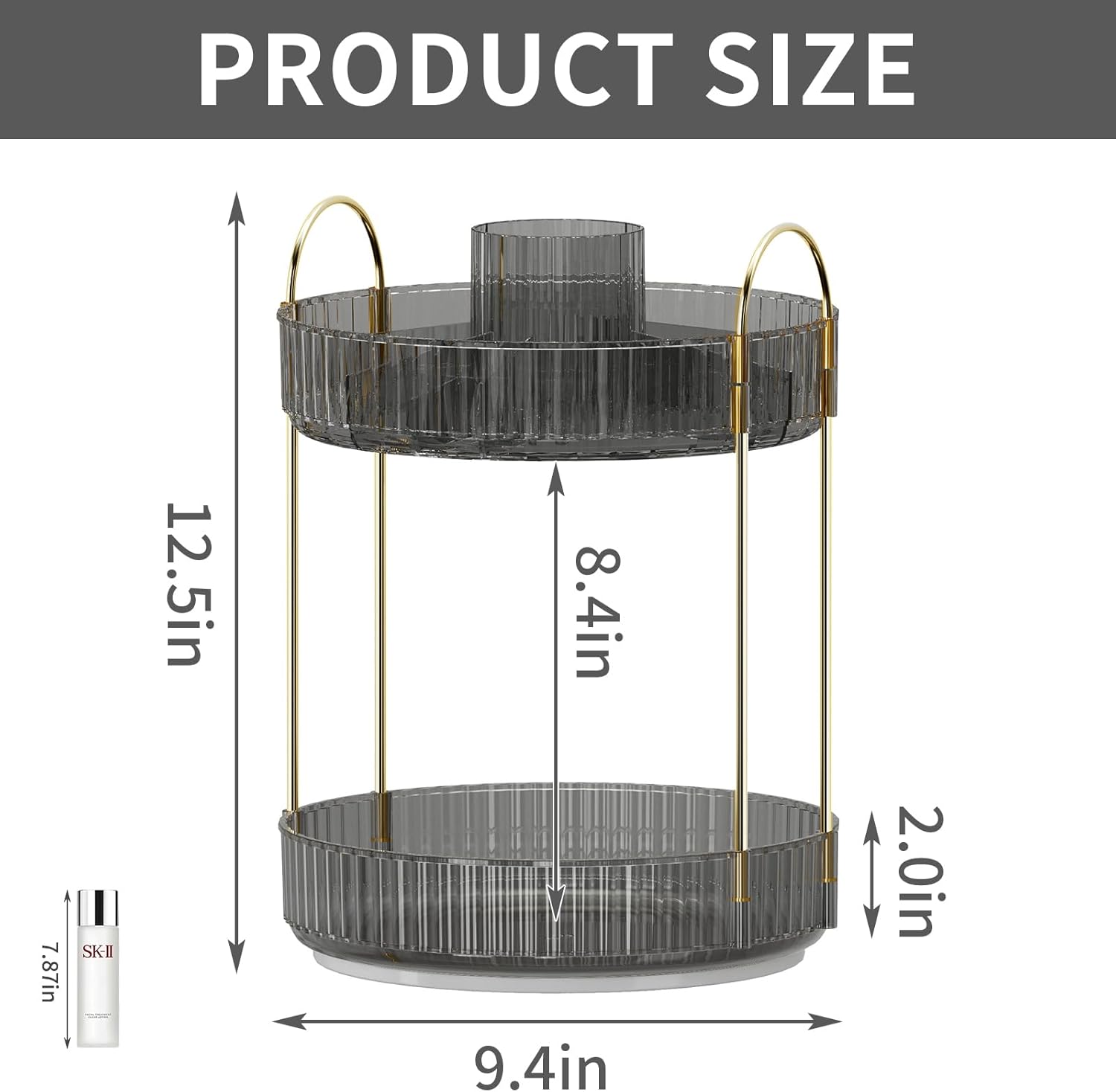 - 【360° Rotation】: The large-capacity makeup organizer allows you to store your cosmetics and skincare products in a clean and orderly space, 360° smooth rotation allows you to quickly find what you need, It's very convenient. The raised edges prevent cosmetics from falling off during rotation.