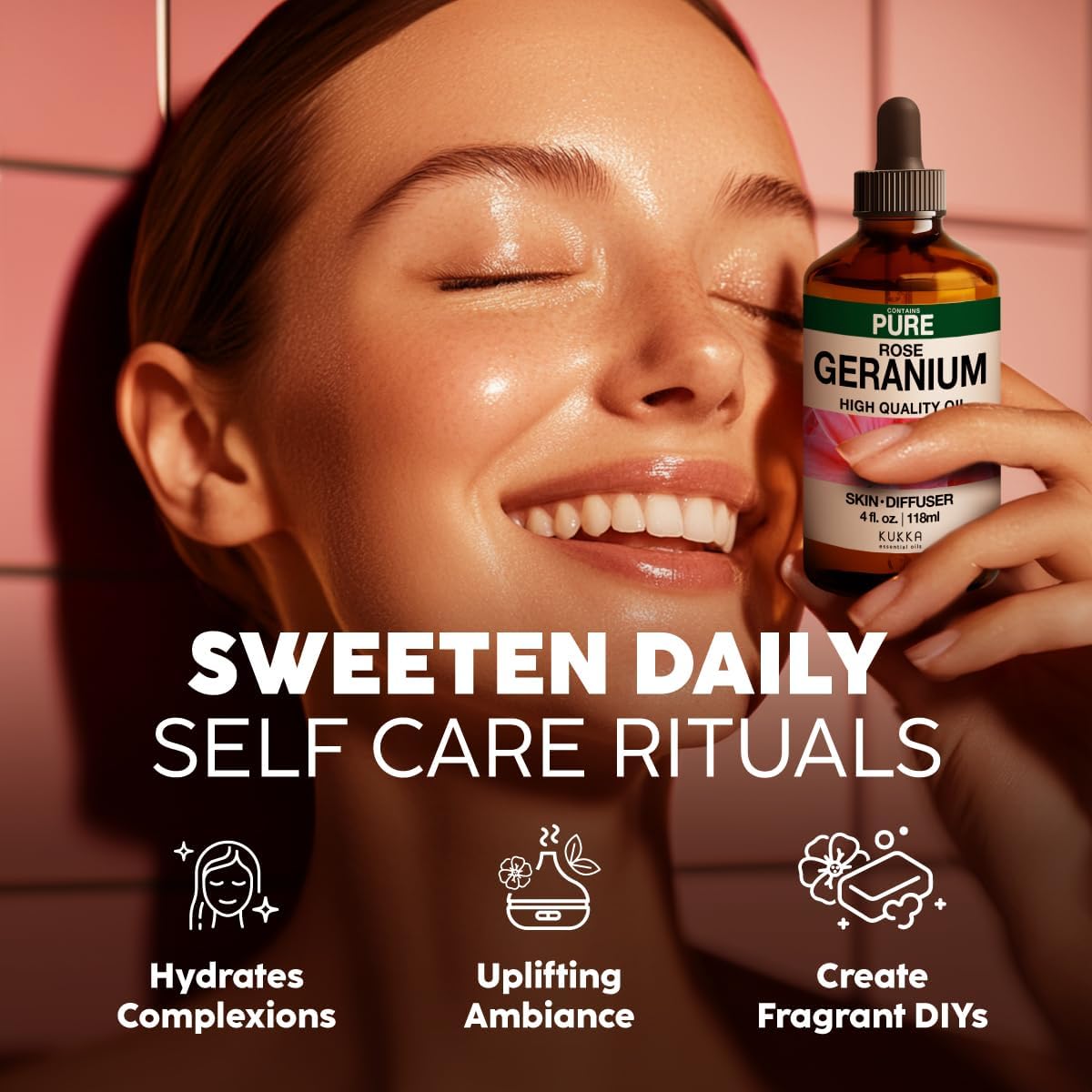 Kukka Rose Geranium Essential Oil for Skin - 4 Fl Oz - Geranium Oil for Diffuser & Aromatherapy, DIY Soap Making Scents