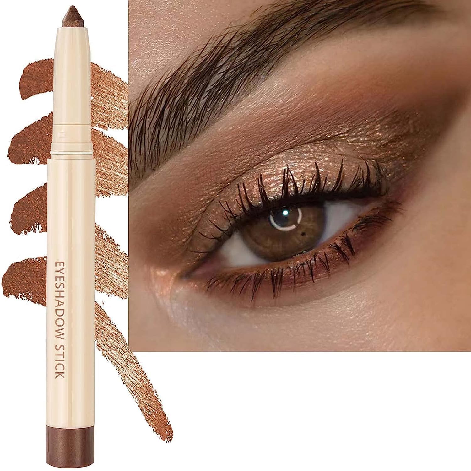 Brown Eyeshadow Stick, Smooth Cream Shimmer Eyeshadow Pencil, Waterproof Long Lasting High Pigmented Hypoallergenic Eye Shadow Highlighter Stick Create Multi-Dimension Eyes Look(16# Brown Shimmer)