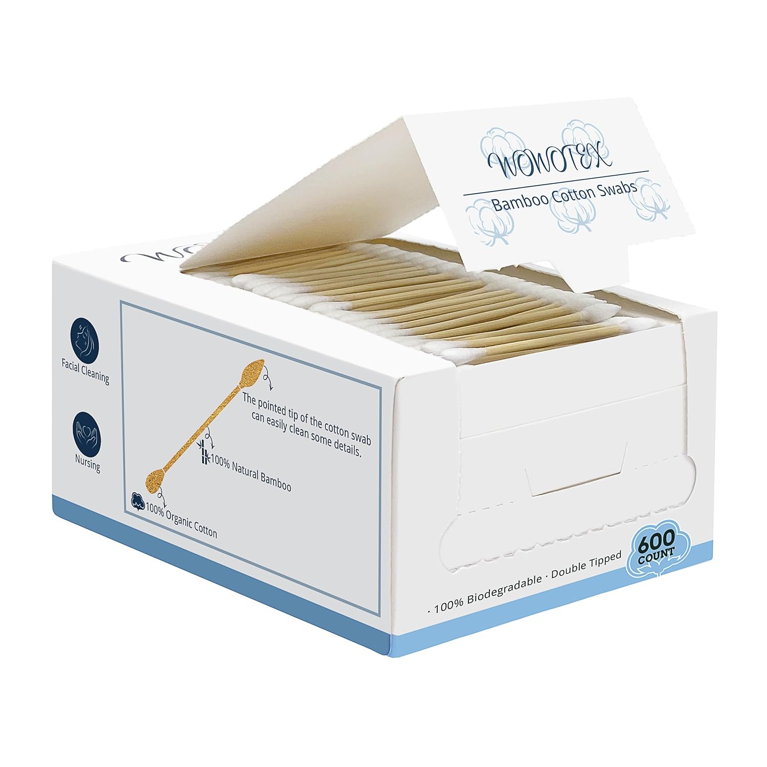 - EXCELLENT MATERIAL : WOWOTEX cotton swabs are made of pure cotton and organic bamboo which are 100% biodegradable.