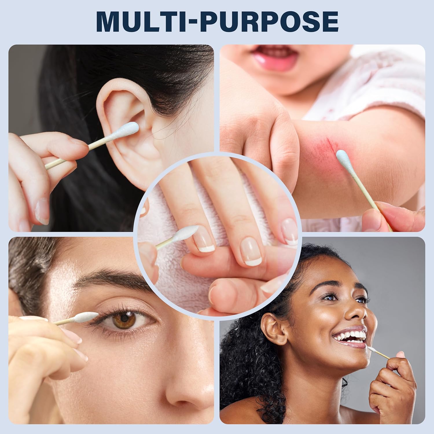 - USE FOR : WOWOTEX cotton swabs can be used for beauty and person care. WOWOTEX cotton swabs are ideal for ear wax removal, eyes & lips makeup, nail polish touch-ups, pet care and clean some details.