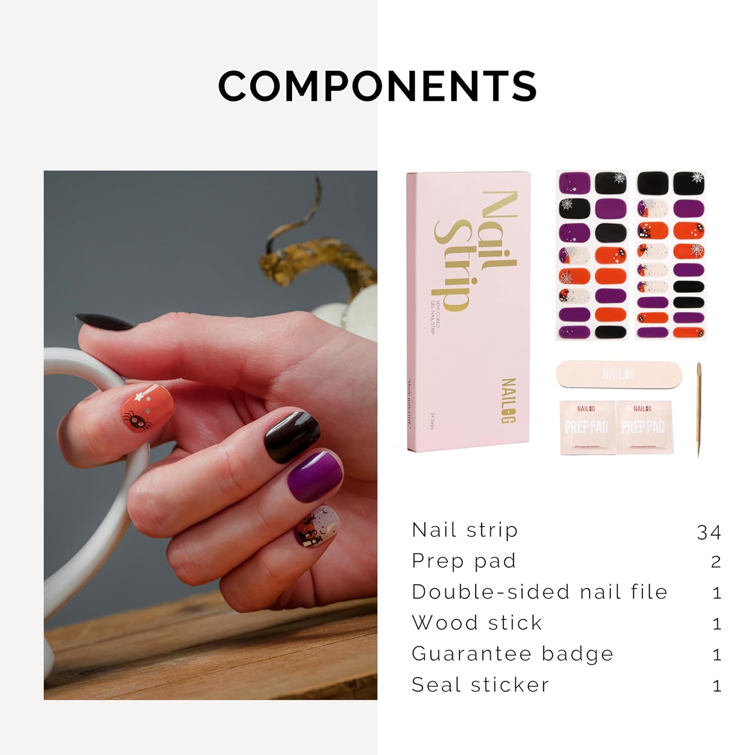 NAILOG Semi Cured Gel Nail Strips 34 pcs| Buy 2 Get 1 UV Lamp | Long Lasting Nail Polish Sticker Wraps with Glossy Gel Finish, Dark Moon Night